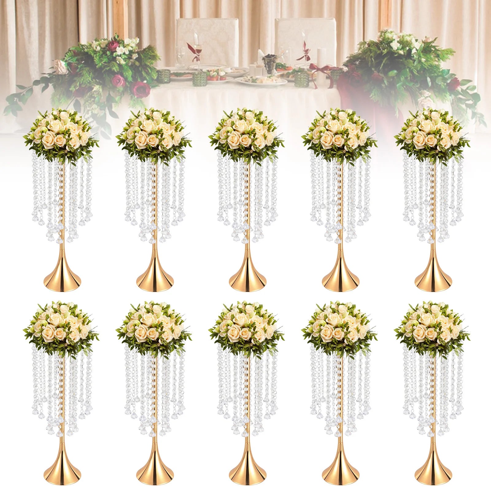 10Pcs 21.9"H Luxurious Acrylic Crystal Flower Stand Wedding Centerpieces, Metal Flower Stand, Tabletop Wedding Party Dinner Home Decor