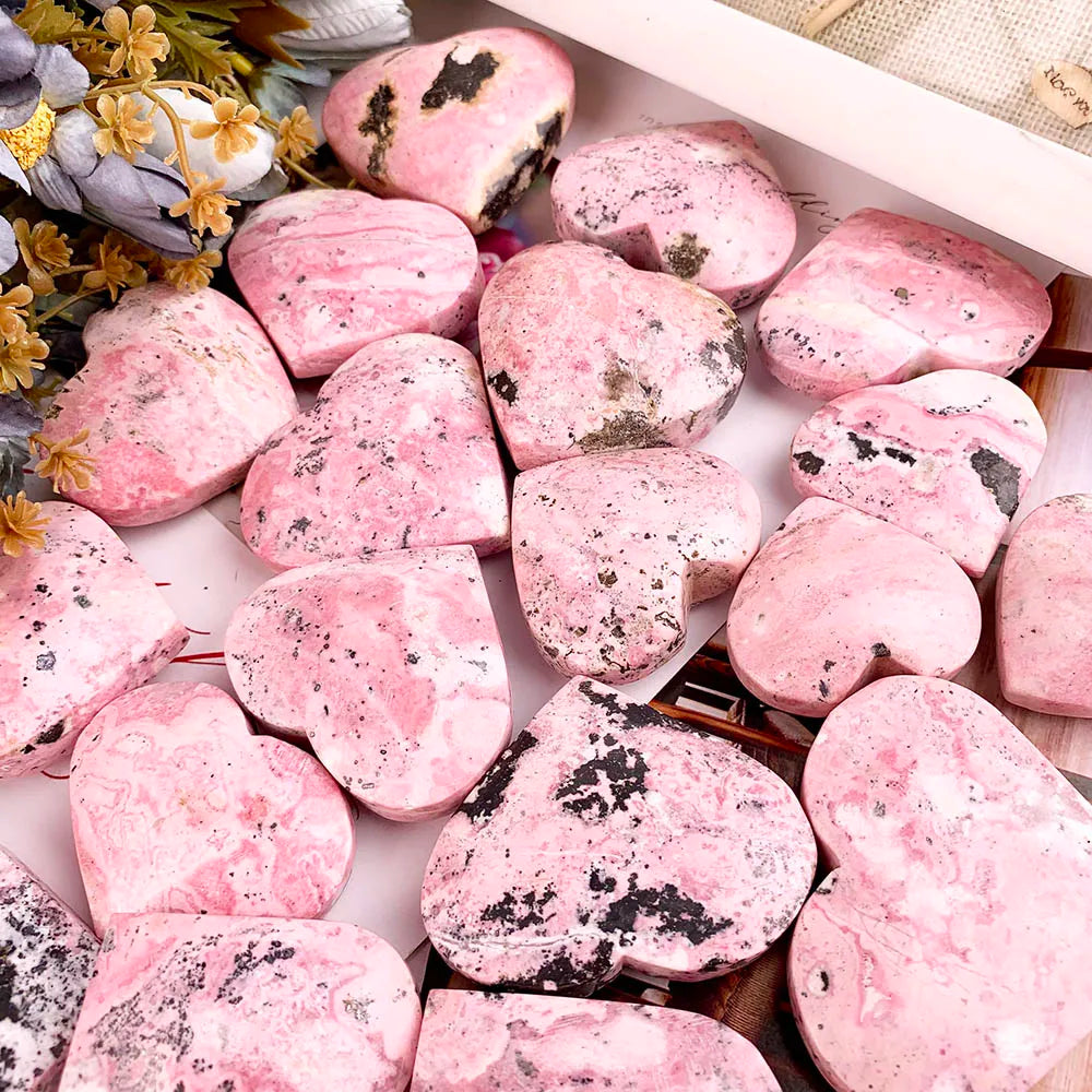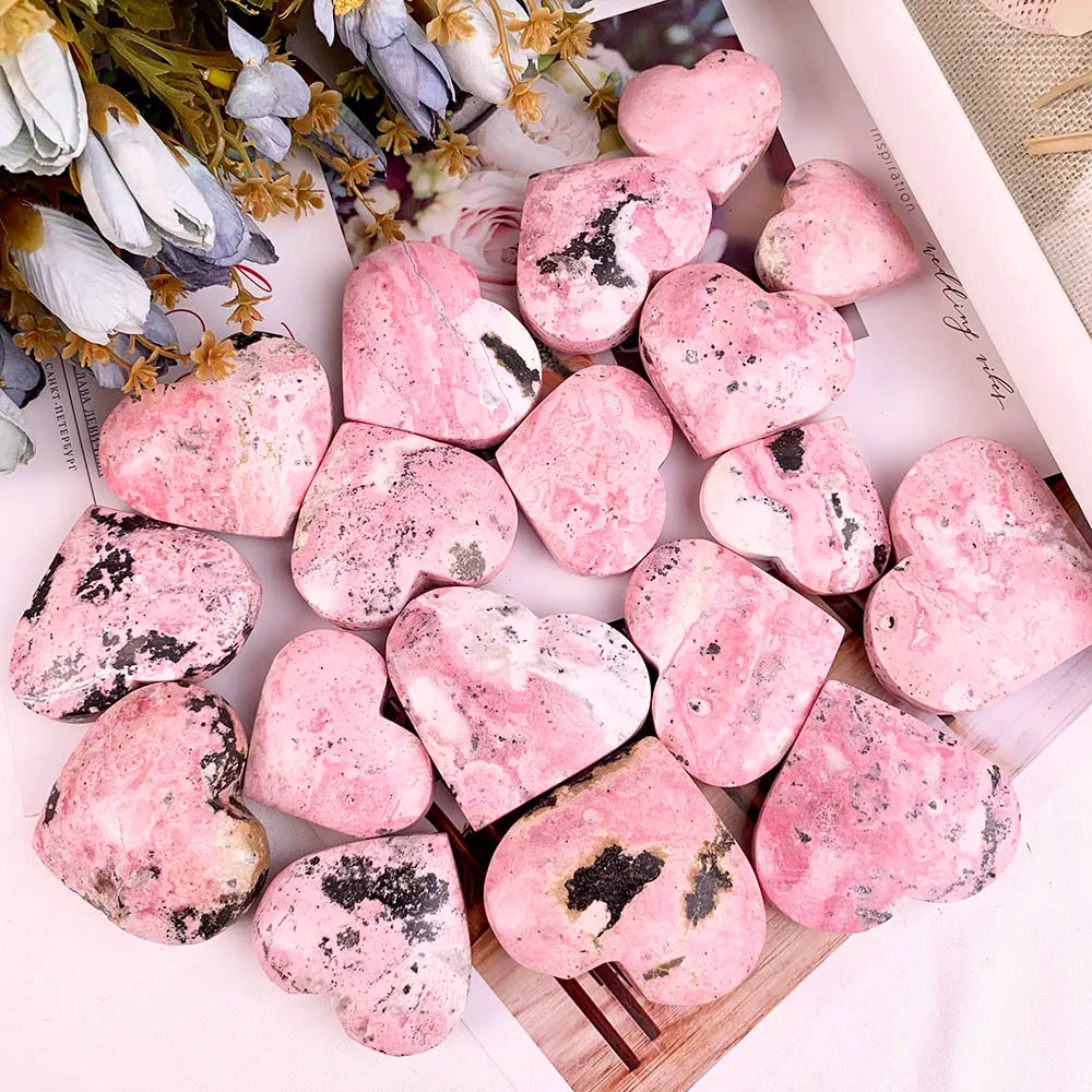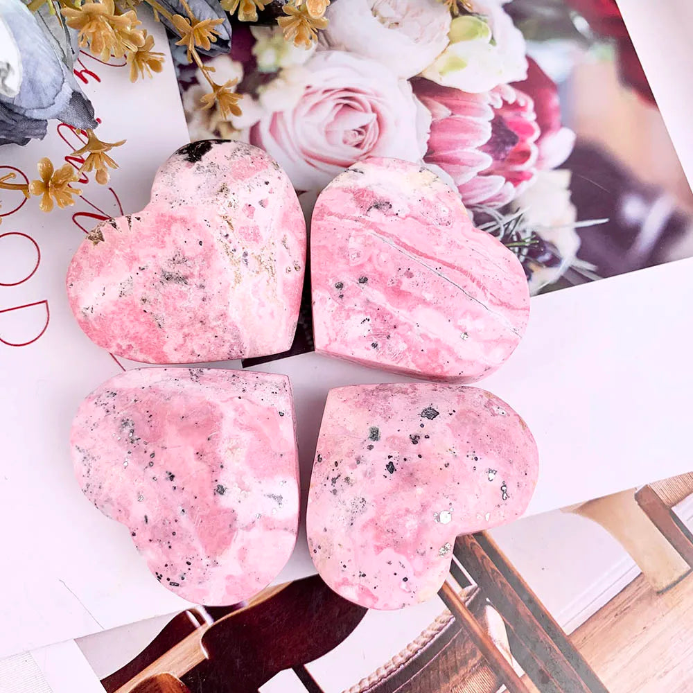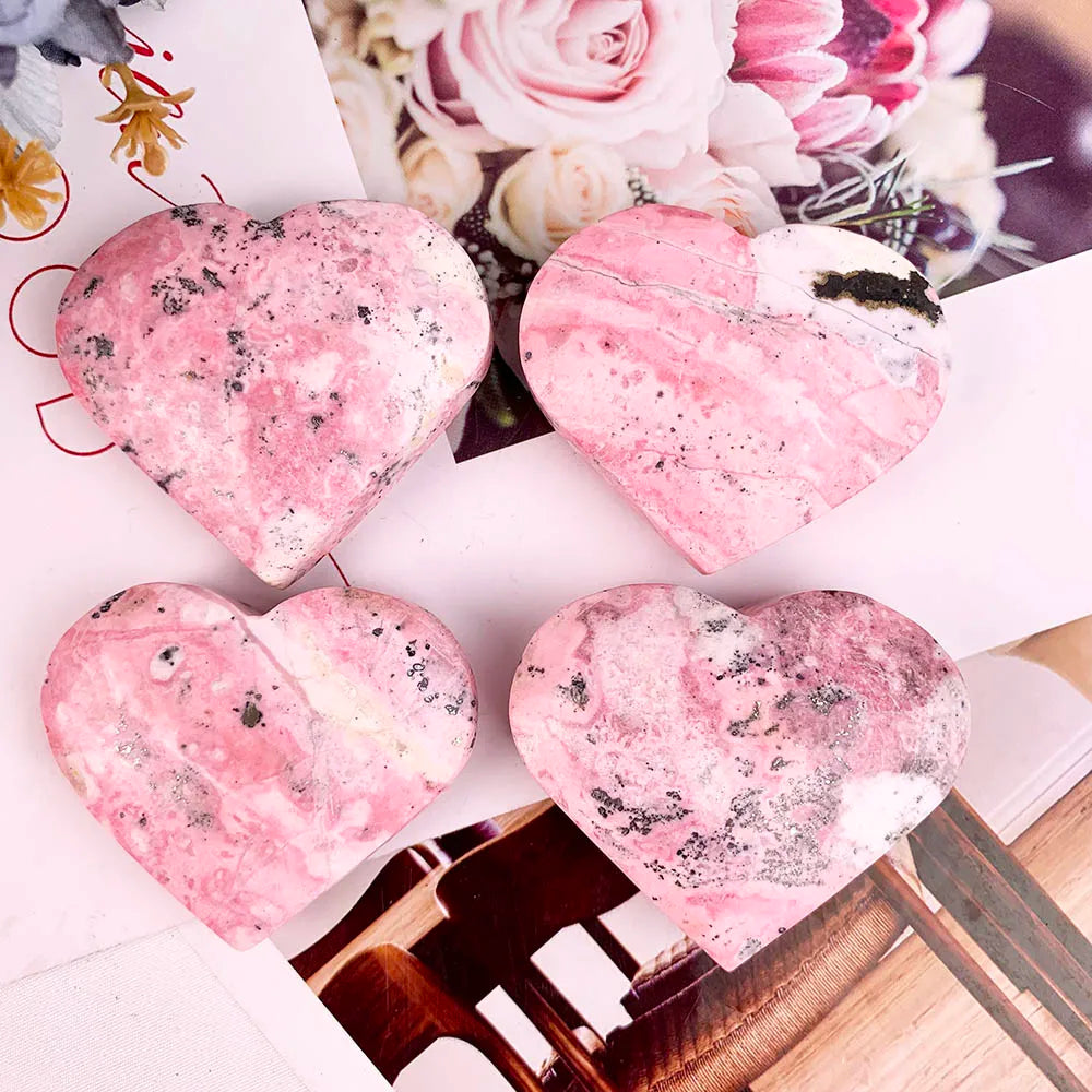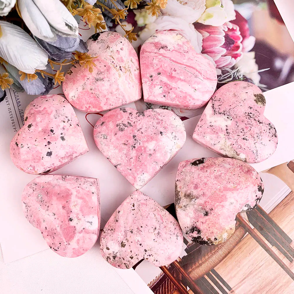 1Pc Natural Mineral Crystal Peru Rhodonite Heart Polishing Unique Pink Pattern Perfect Home Decor