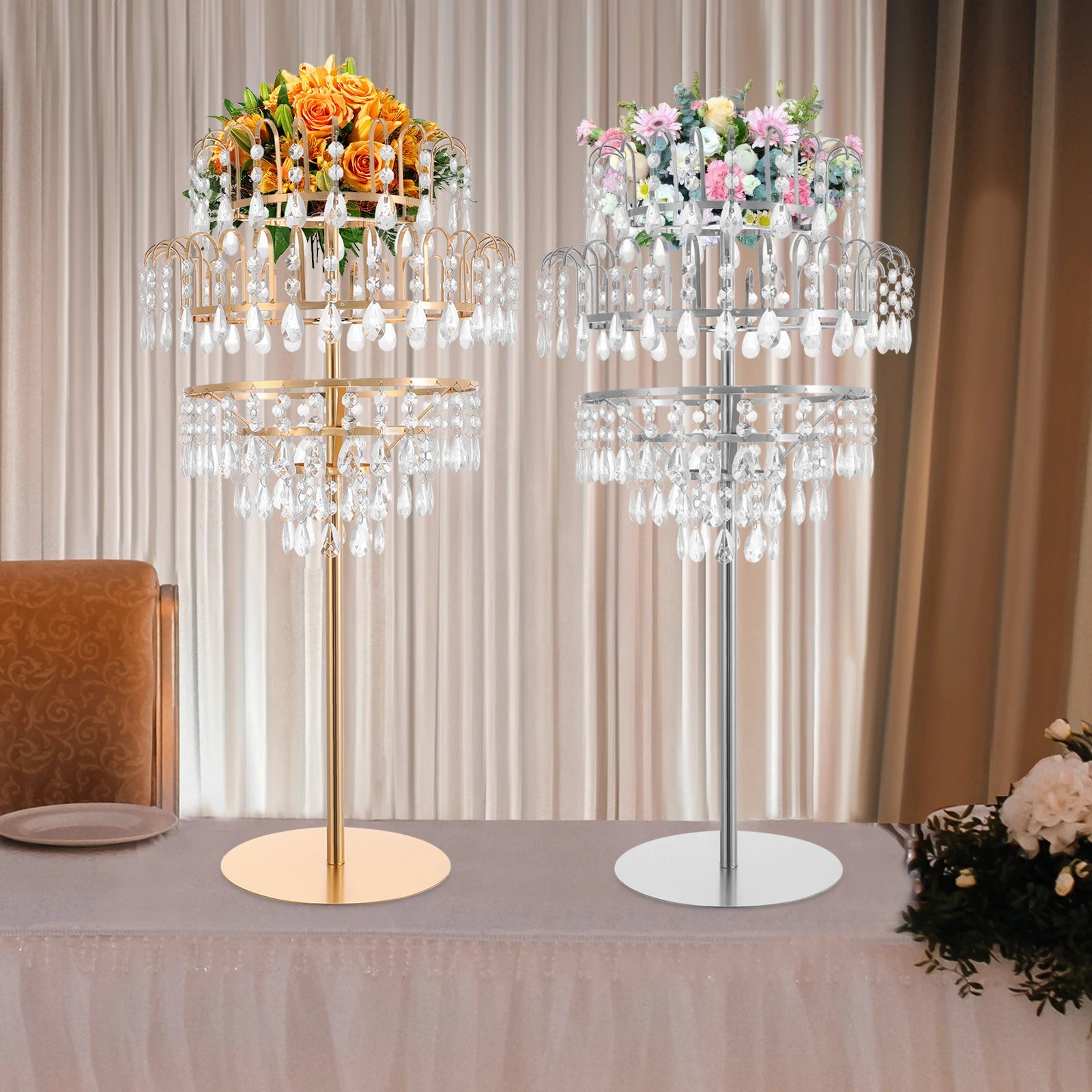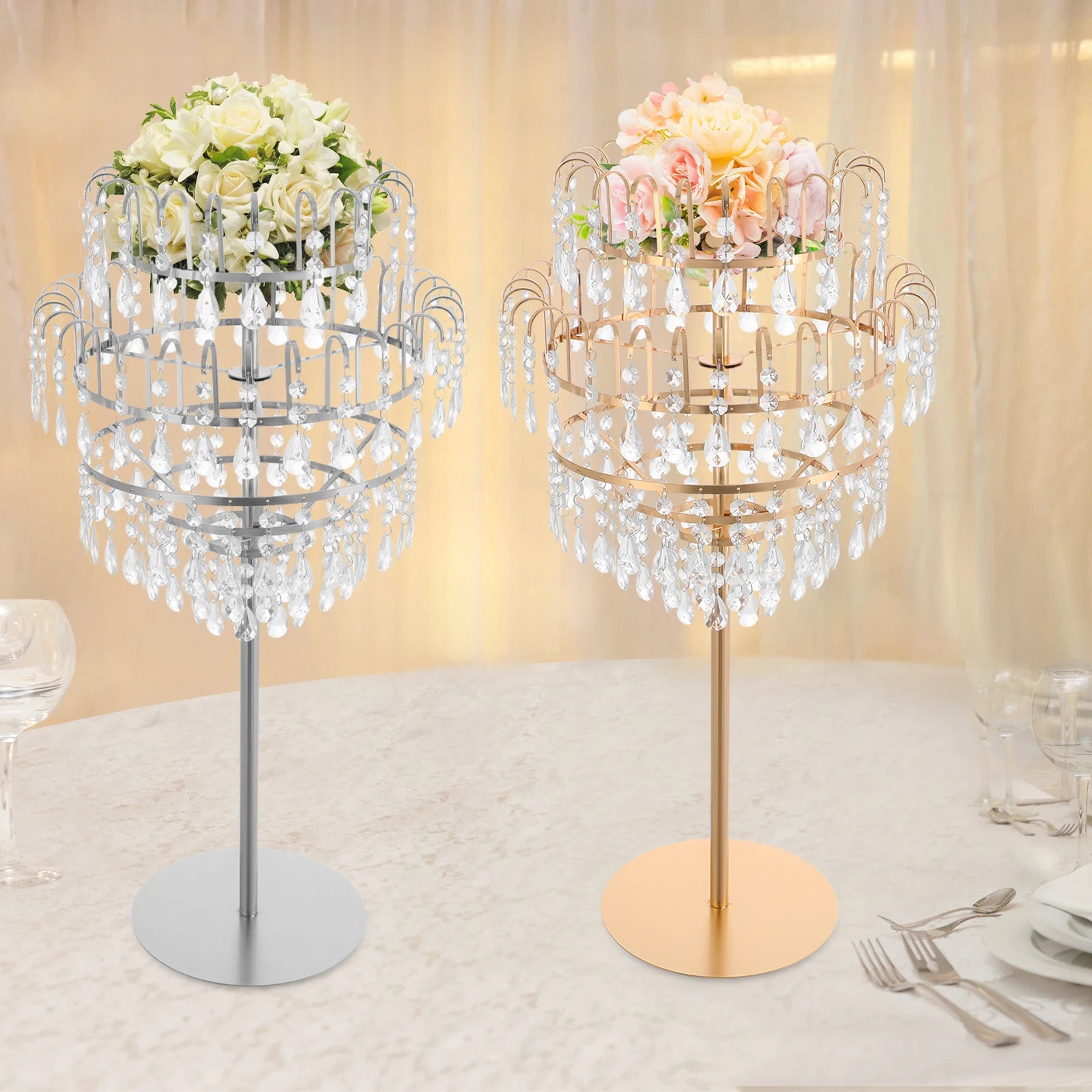 Attractive Appearance: A delicate finish and unique hollow design with 5 tiers of crystal clear pendants make this flower stand for centerpieces unique and elegant, enhancing your weddings and events and becoming the visual focal point of the space.