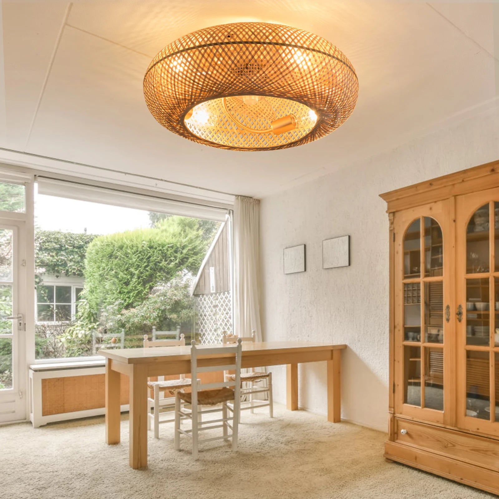 6-Speed Ceiling Fan, Woven Rattan Shade, Quiet & Energy Efficient,Perfect Home Decor