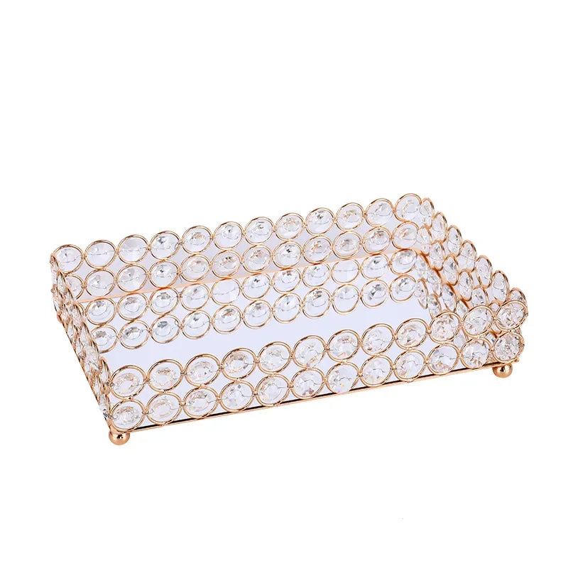 5.Handcraft premium crystals, 2 layer beads, mirrored glass surface tray with stunning and sturdy base.