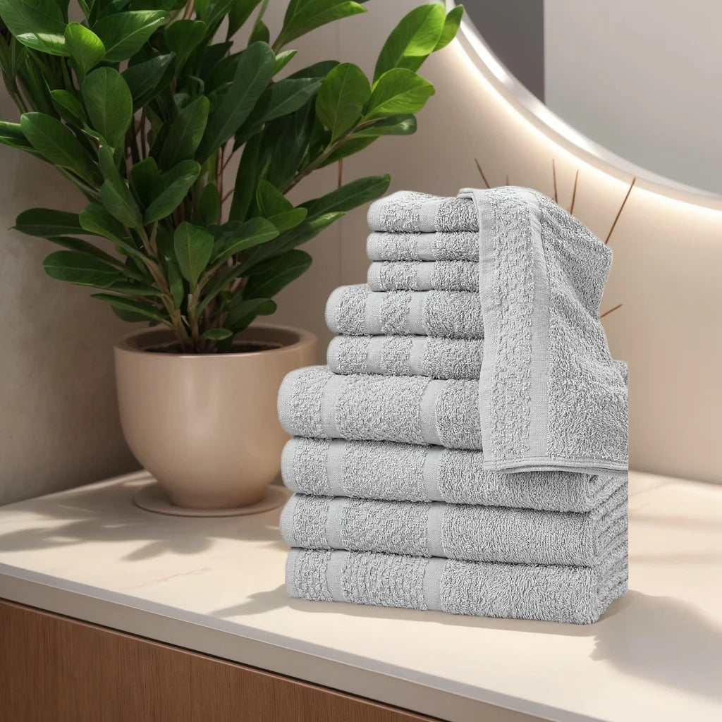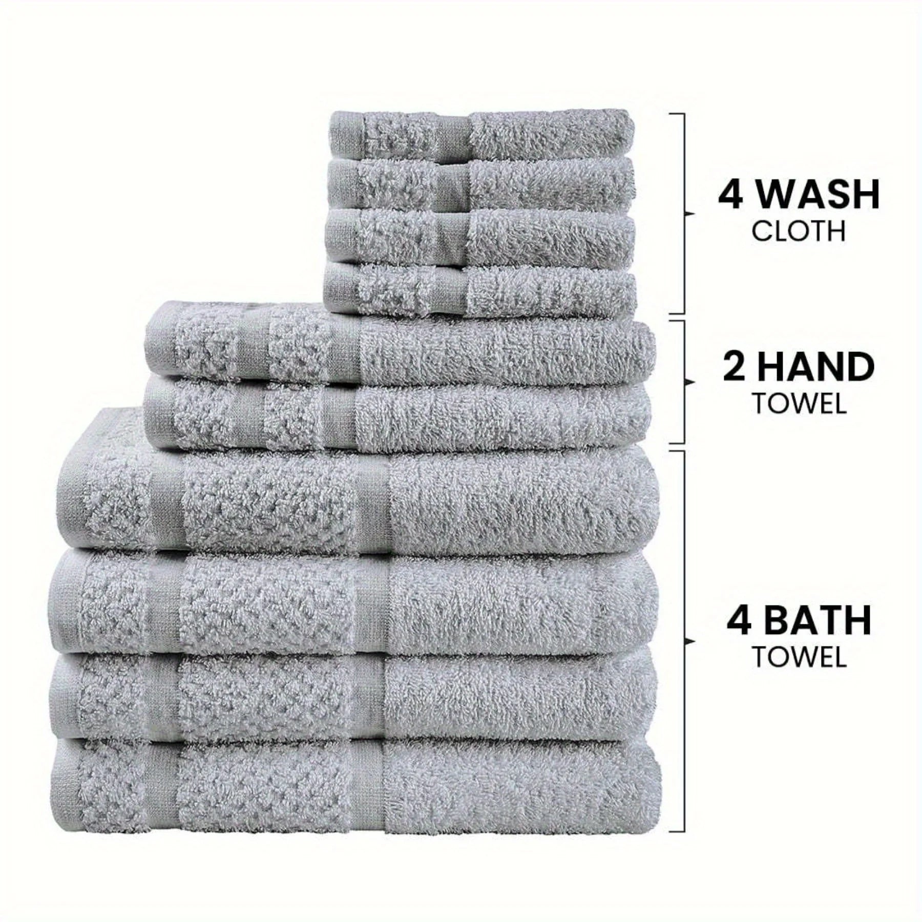 Our 10-piece towel set, including 4 plush bath towels, 2 convenient hand towels, and 4 indispensable washcloths, combines comfort, aesthetics, and utility to revamp your bathing experience.