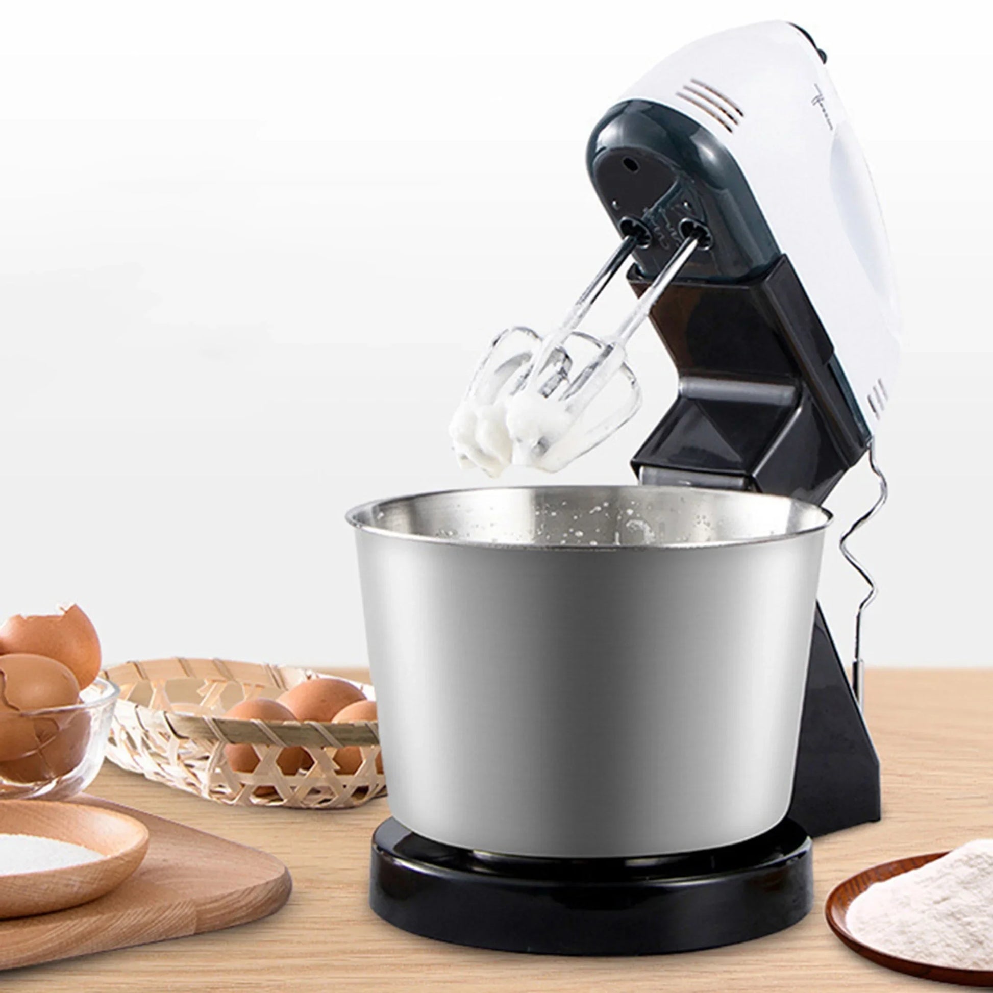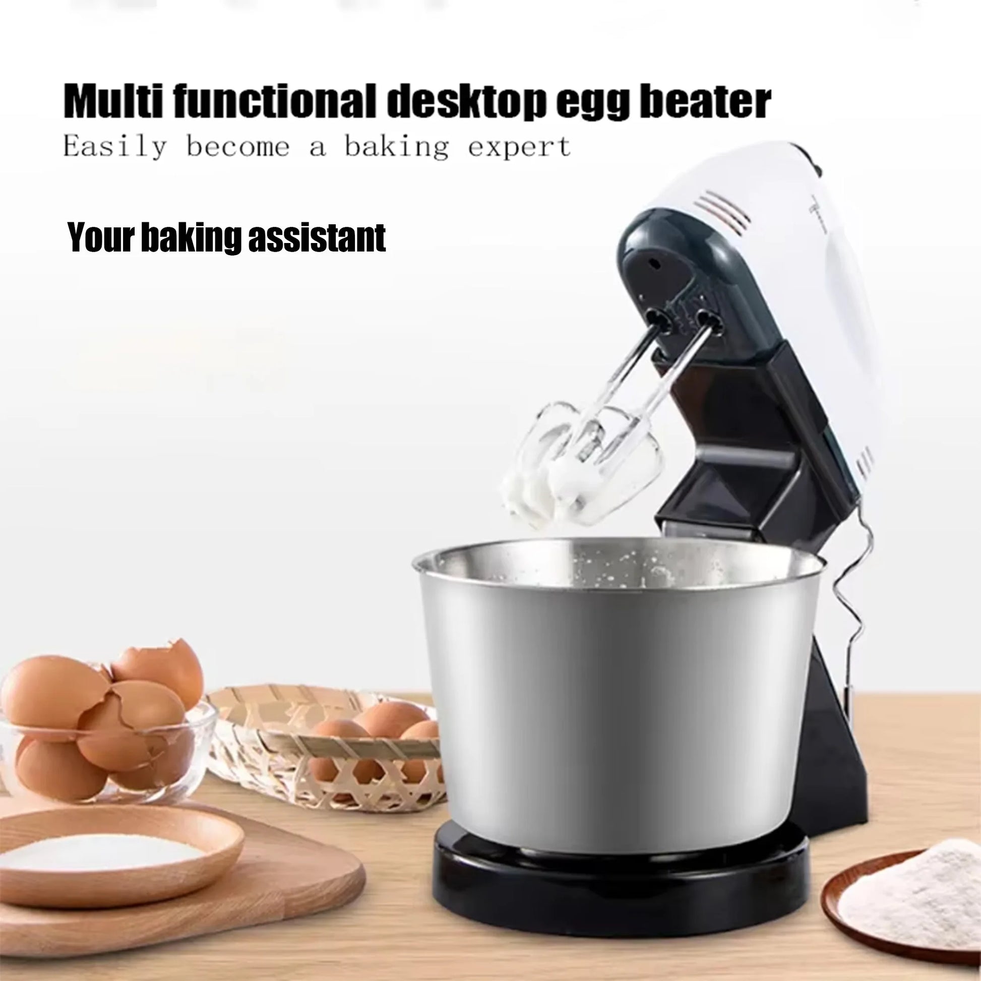 2. Double mixing heads and dough hooks for easy mixing and kneading, saving time and effort. The double line mixer is suitable for fluffy whipped cream, perfect frosting, and cakes with egg whites.