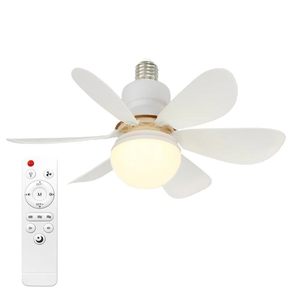 E27 40W 52Cm Ceiling Fan With Led Light Remote Control White For Kitchen Bedroom Dining Room Patio
