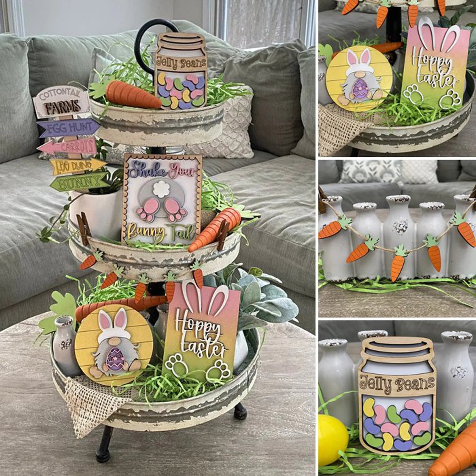 Easter Carrots Tiered Tray Decor Tiered Tray Ornament Decorative Home Cartoon Animal And Plant Letter Tray