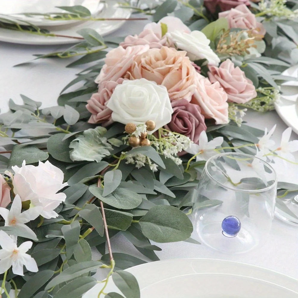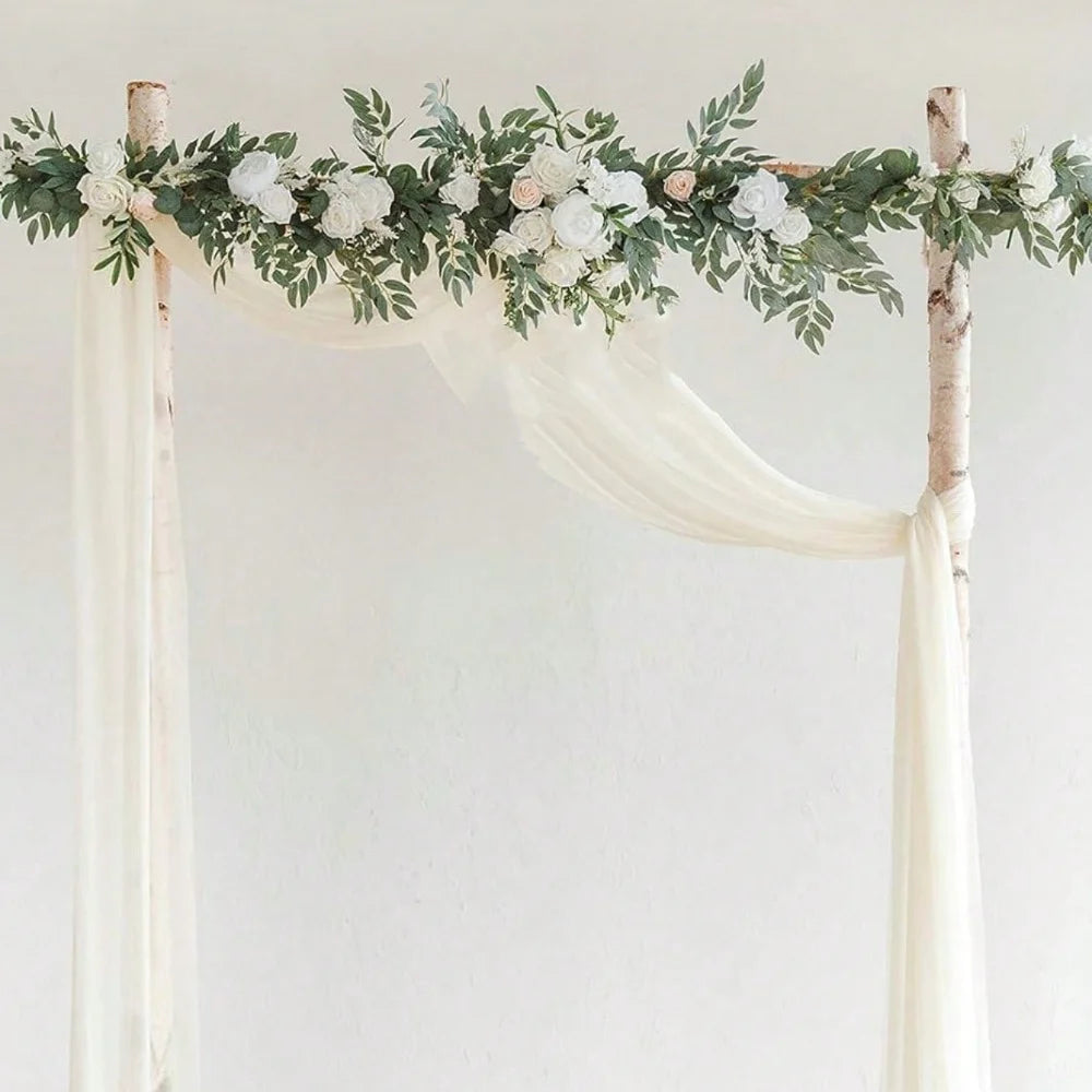 Eucalyptus Willow Leaf Garland with Flower, Handcrafted Sweetheart Arch Backdrop Decorations