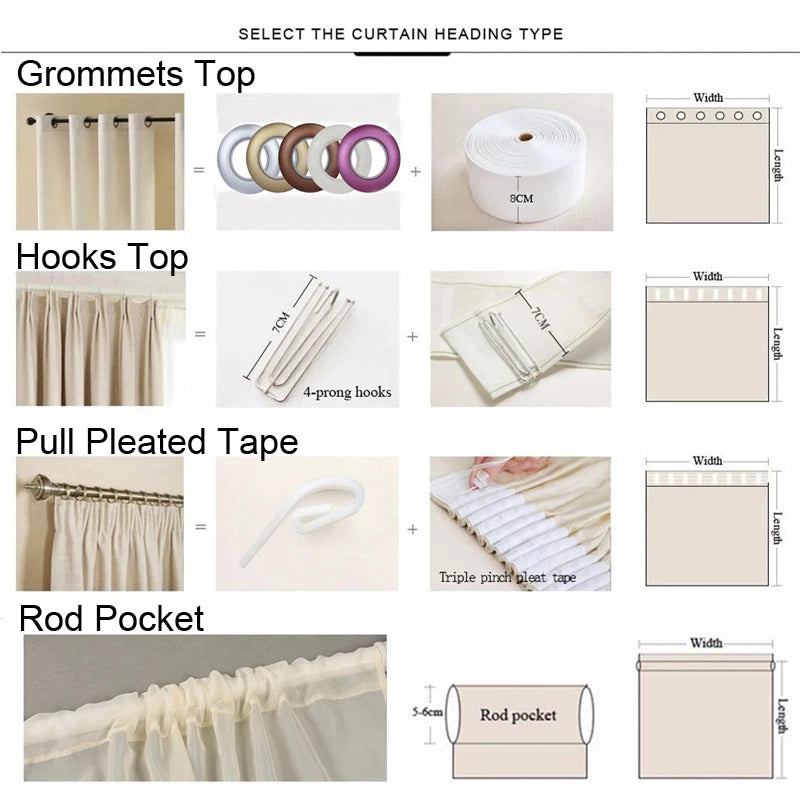 Processing Method: Grommets Top, Hooks Top, Pull Pleated Tape, Rod Pocket