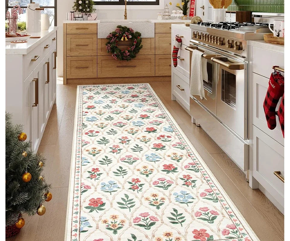 Hallway Carpet Runway Rug Machine Washable Non-slip Floor Mat Spring Flower Home Decoration Rugs for Living Room