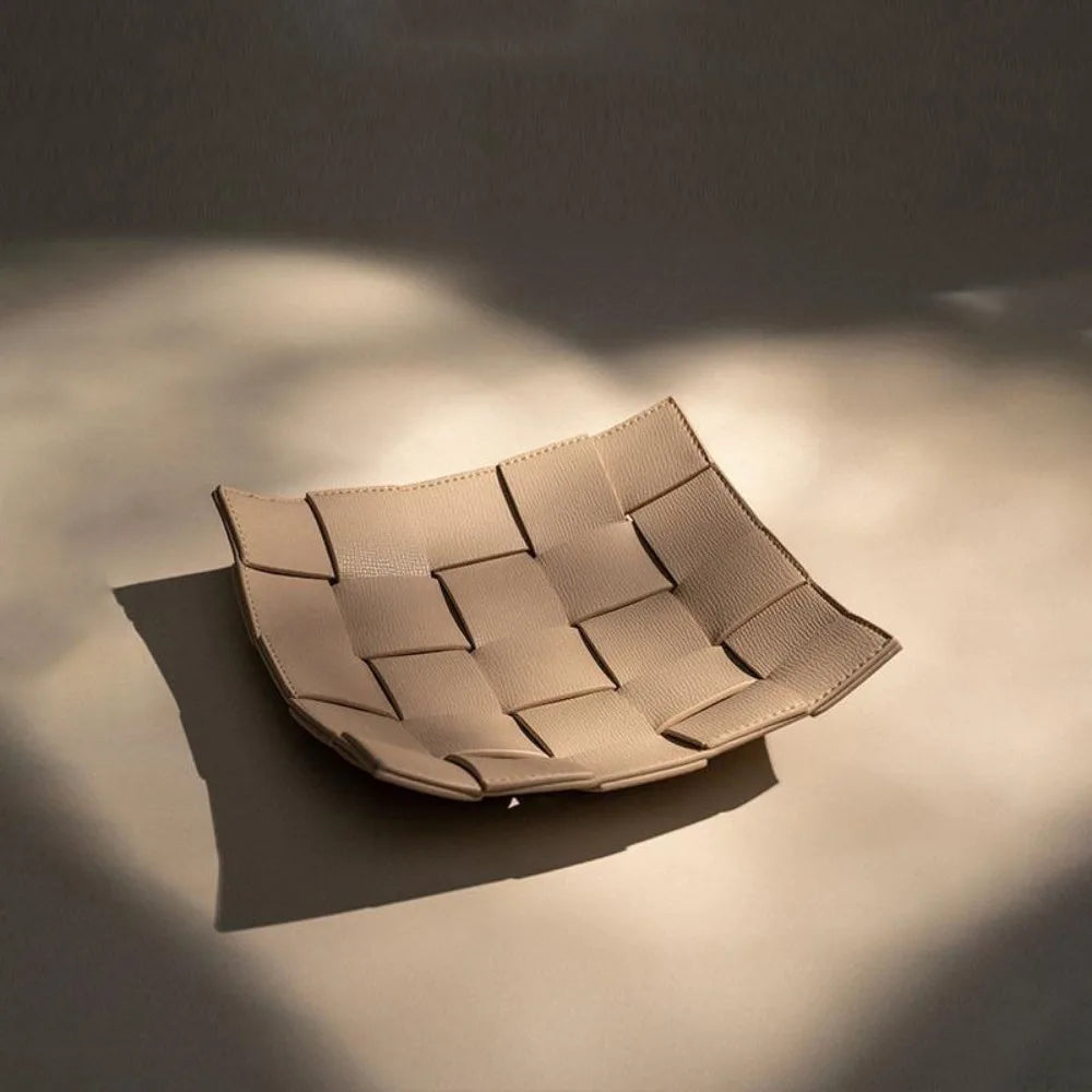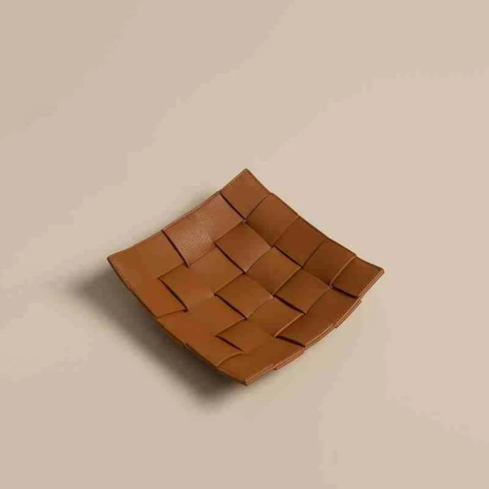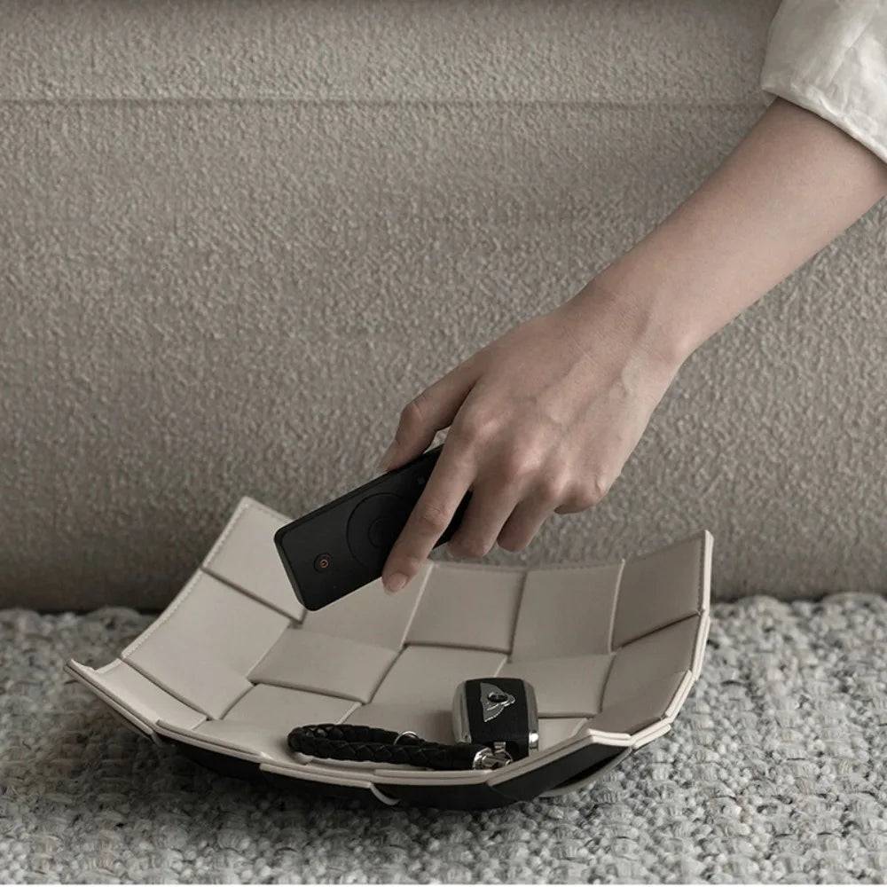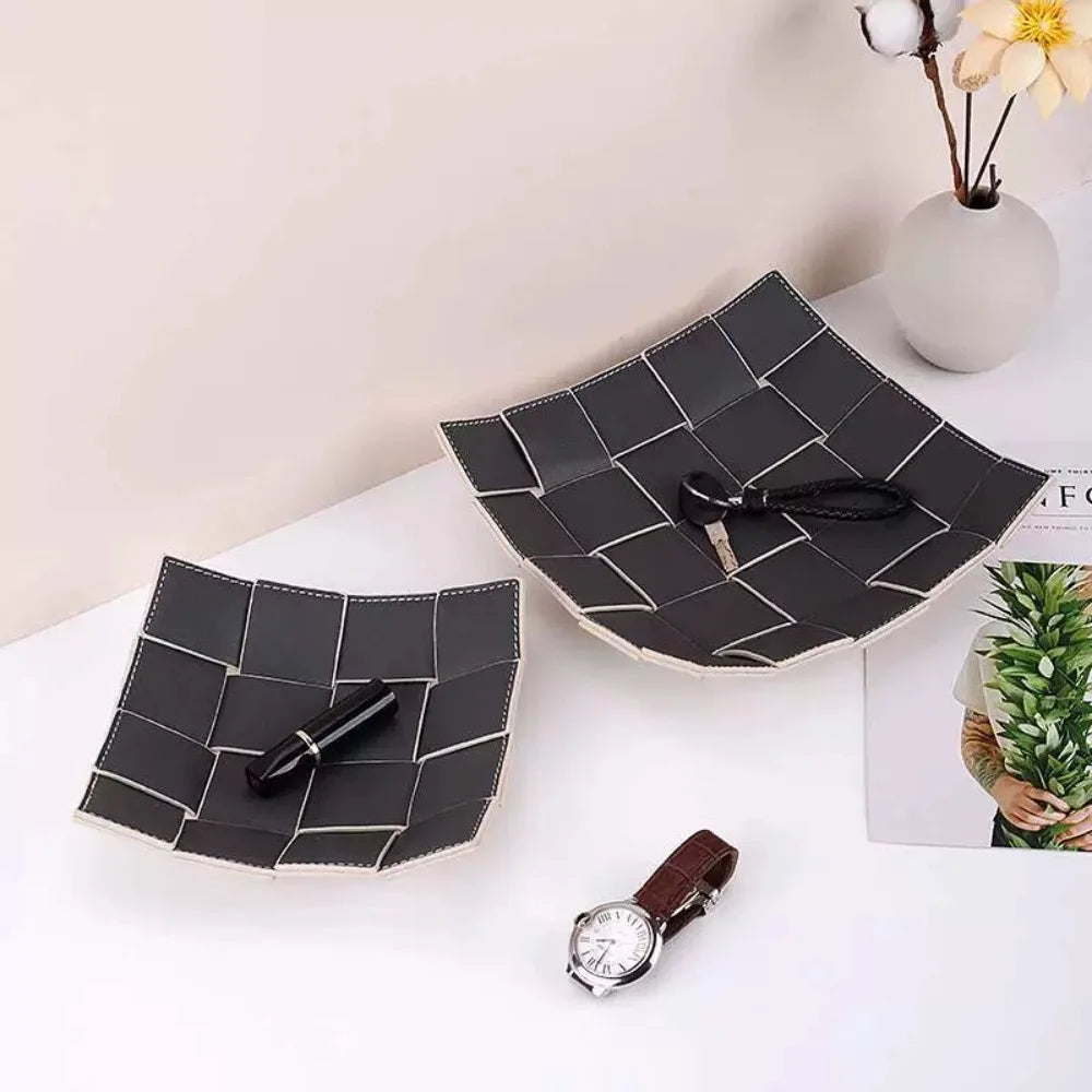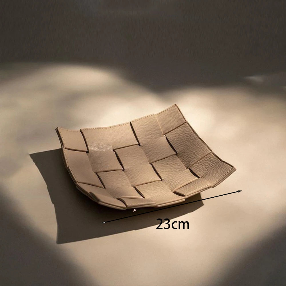 Leather Storage Tray Home Living Room Desktop Woven Storage Tray Decorative Jewelry Dish