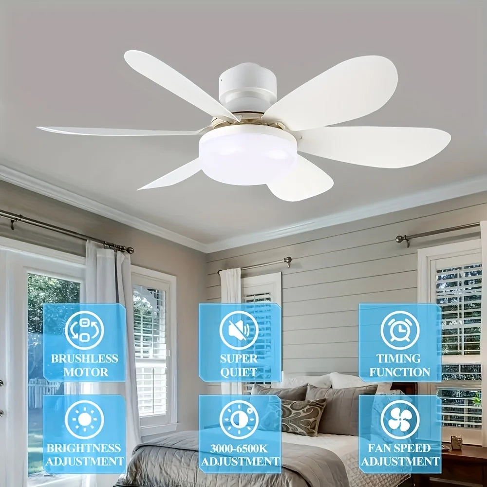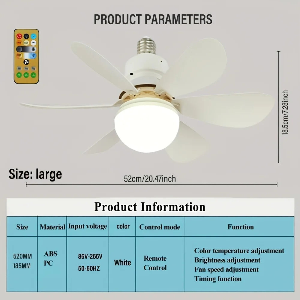 LED Ceiling Fan Light, E26/E27 Base with Remote Control, Timer, 6 Blades, 3 Speeds, Adjustable Brightness and Color Temperature