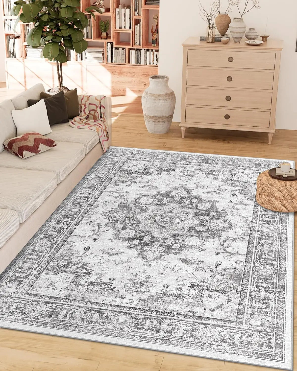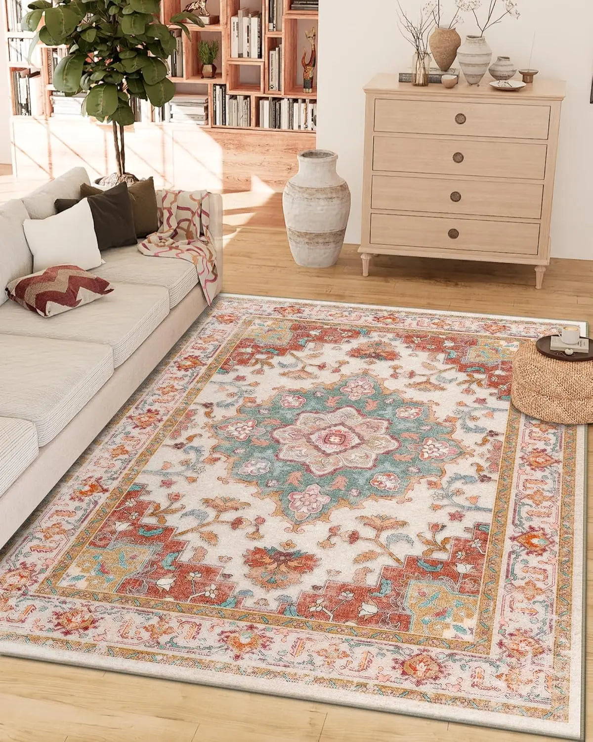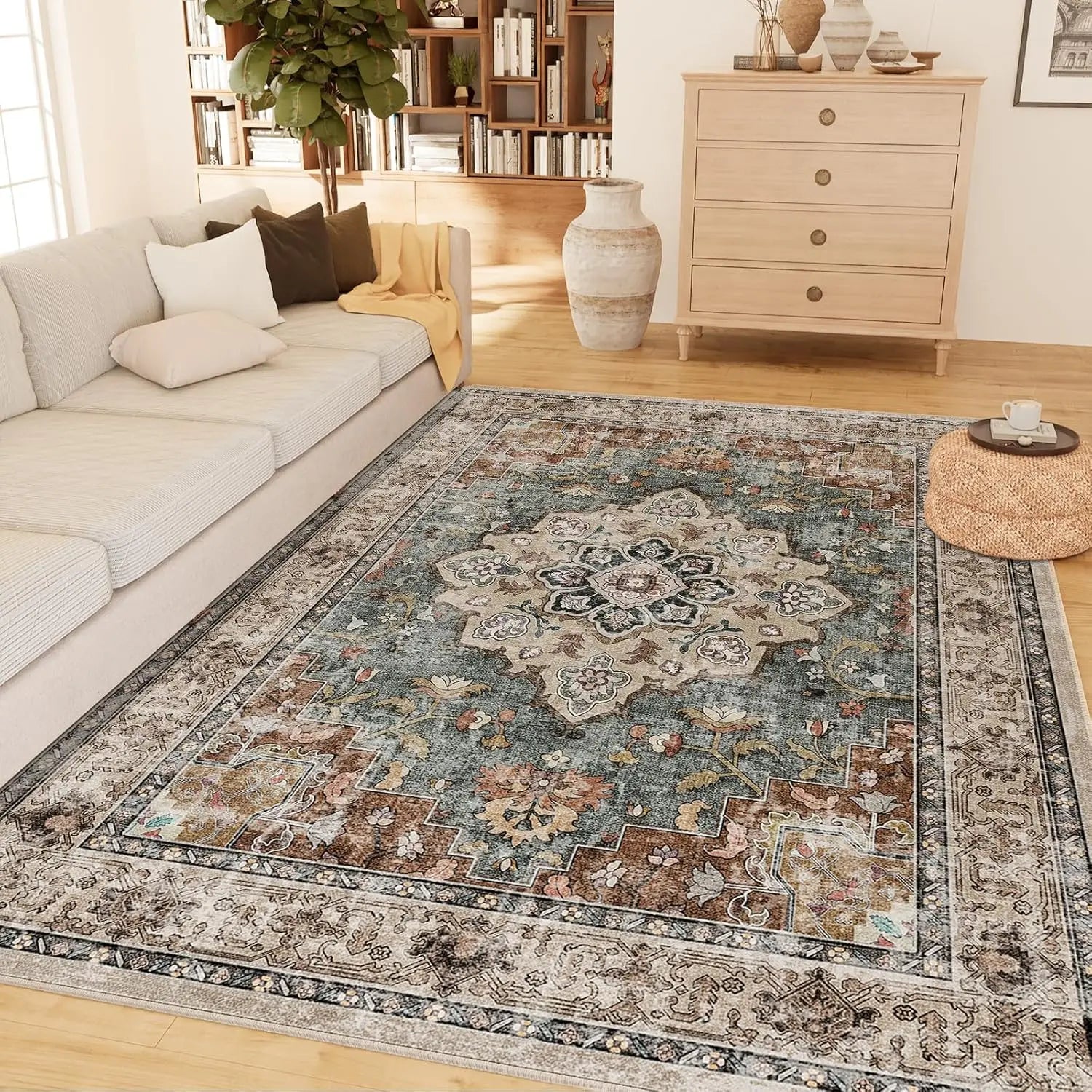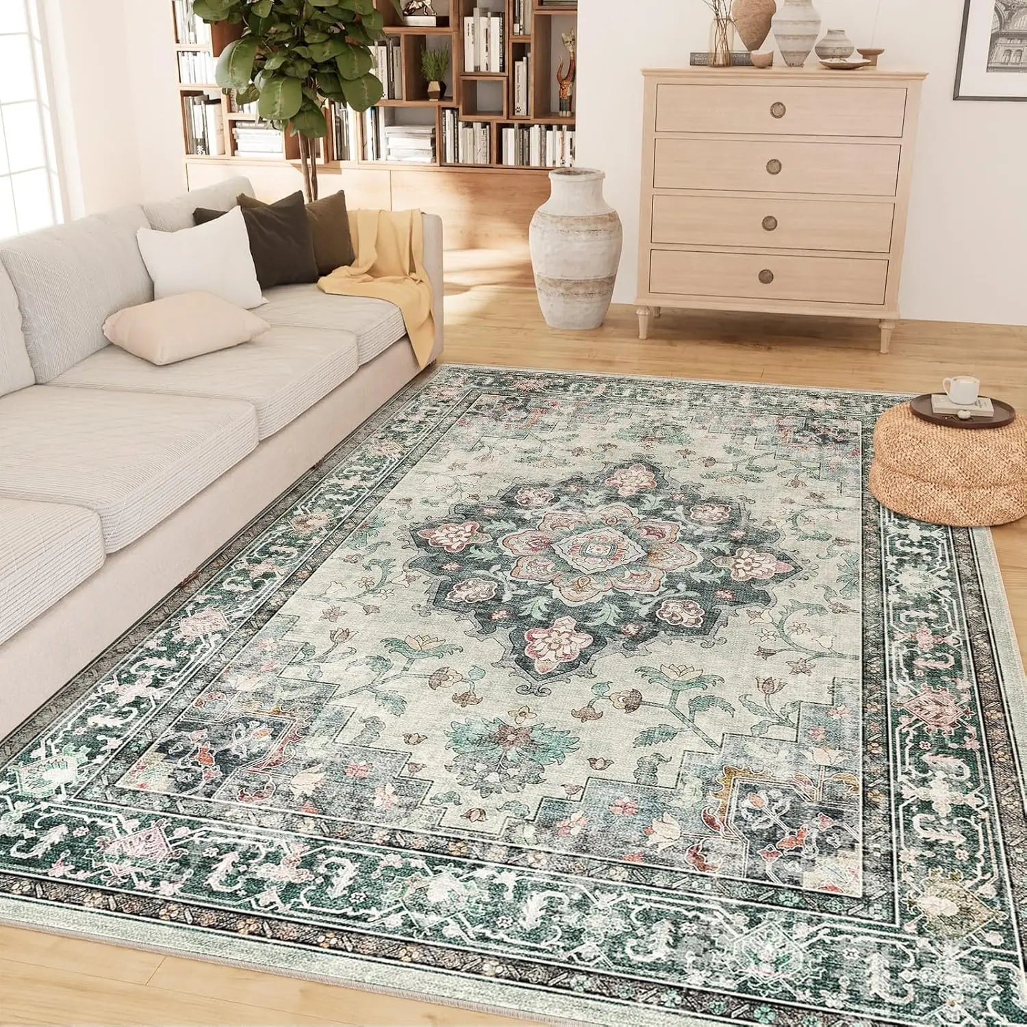 Machine Washable Area Rugs for Living Room Carpet Non Slip Low Pile Water Repellent Soft Print Pattern