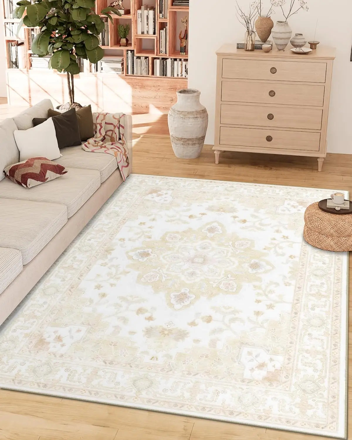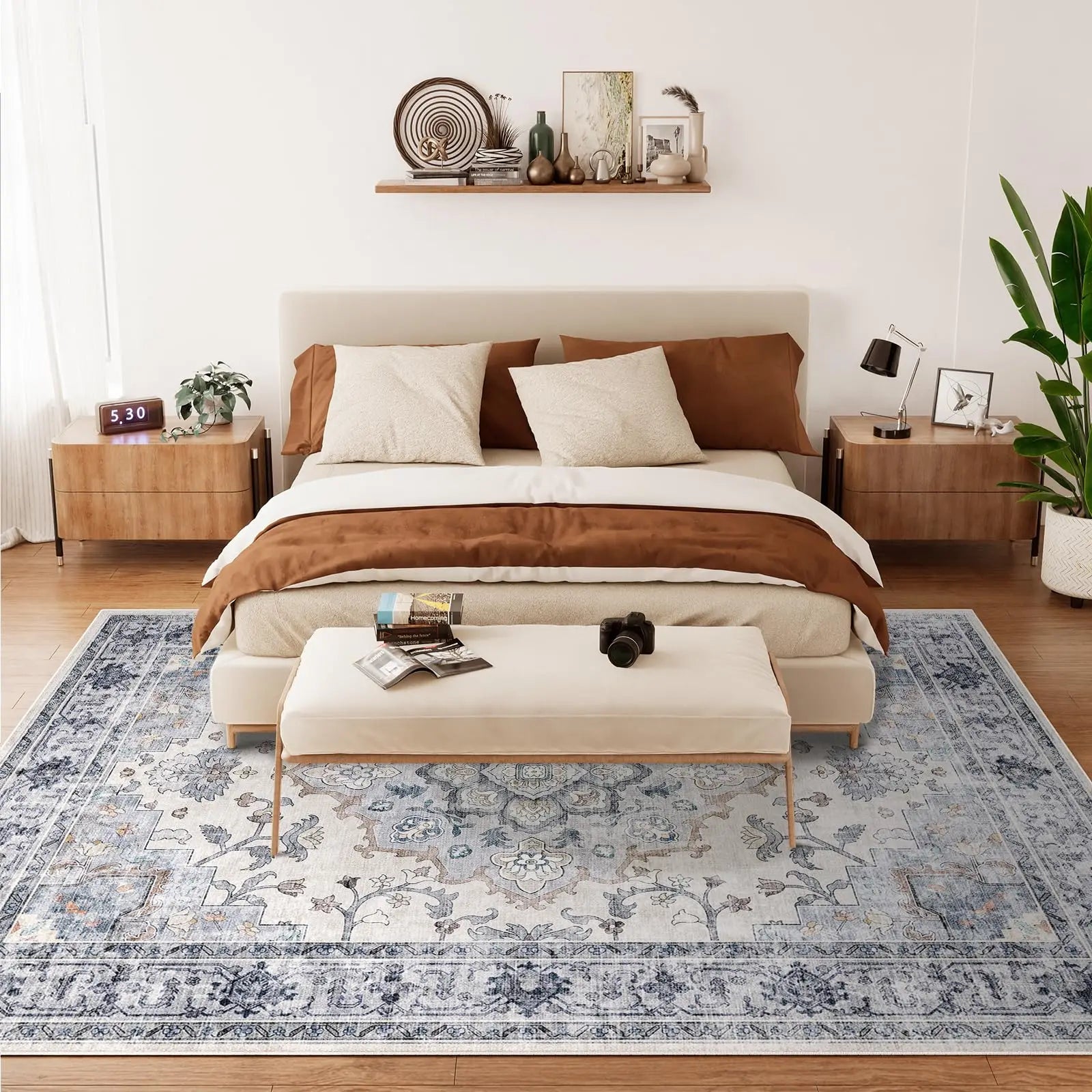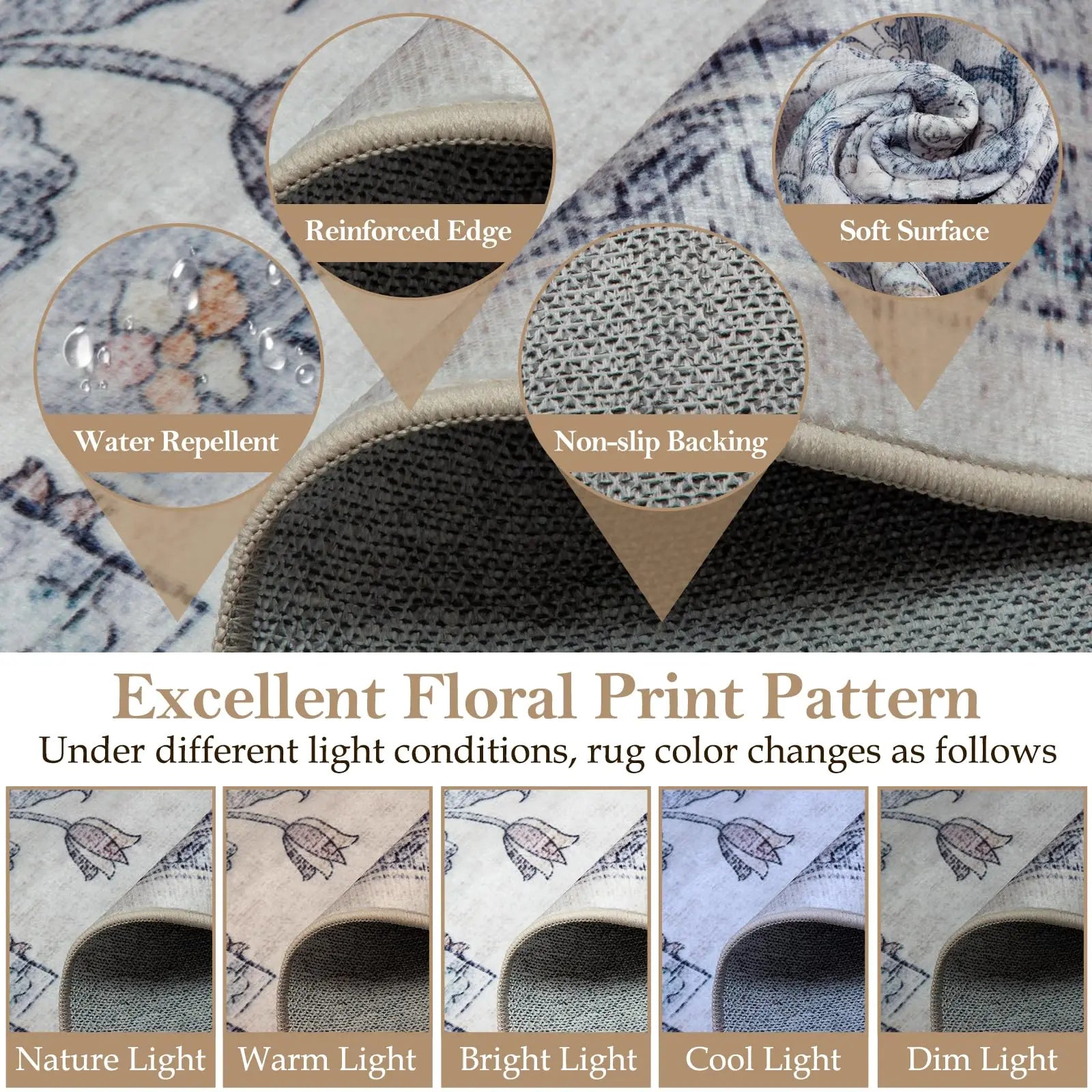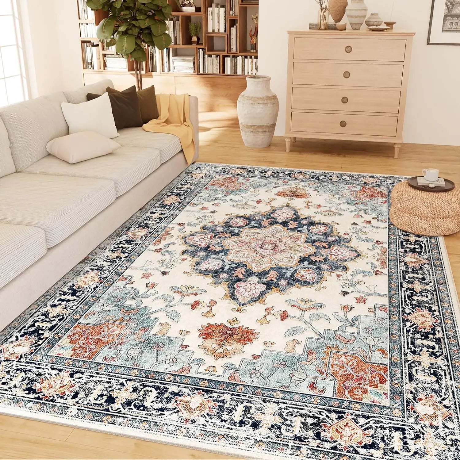 Machine Washable Area Rugs for Living Room Carpet Non Slip Low Pile Water Repellent Soft Print Pattern