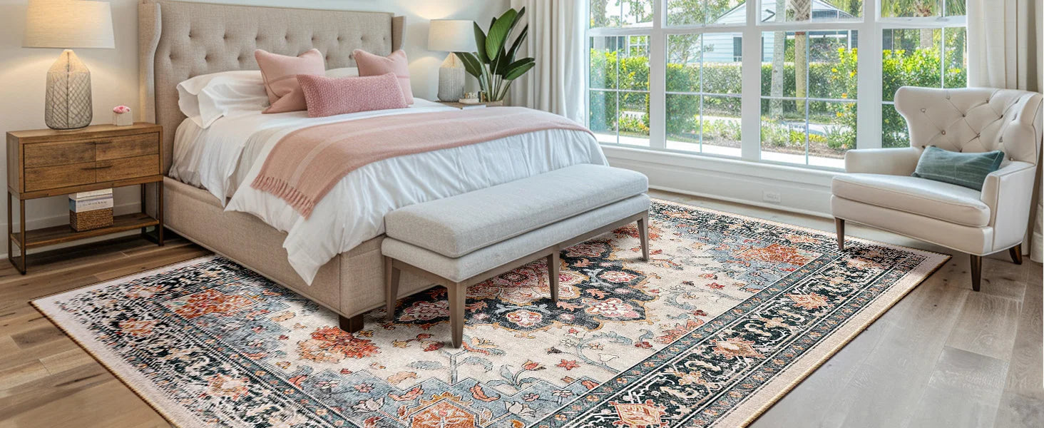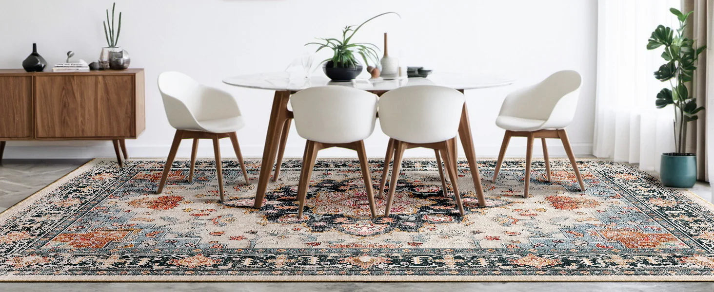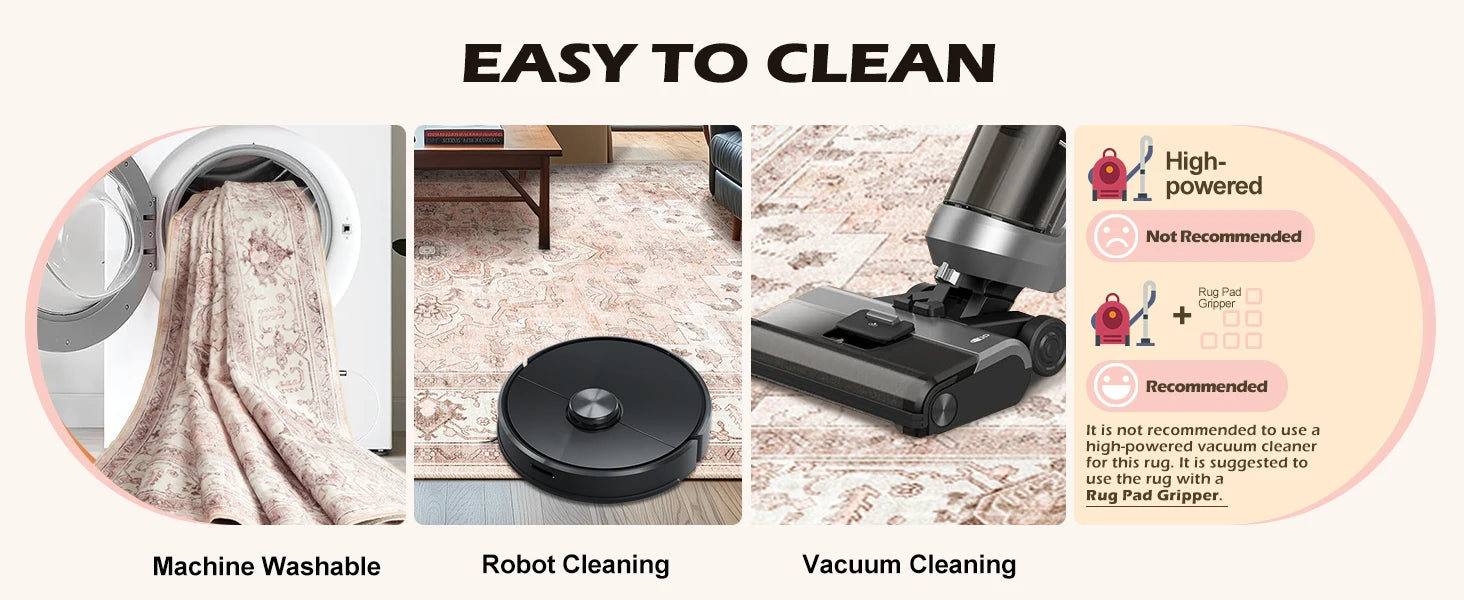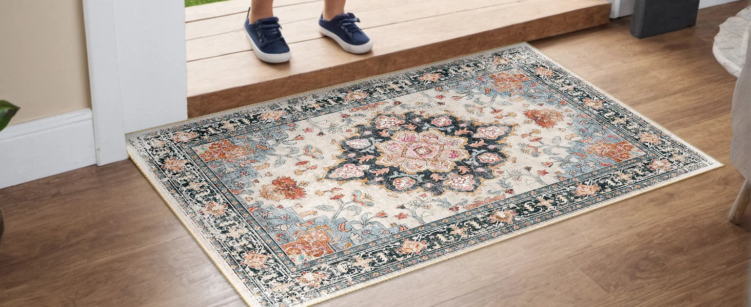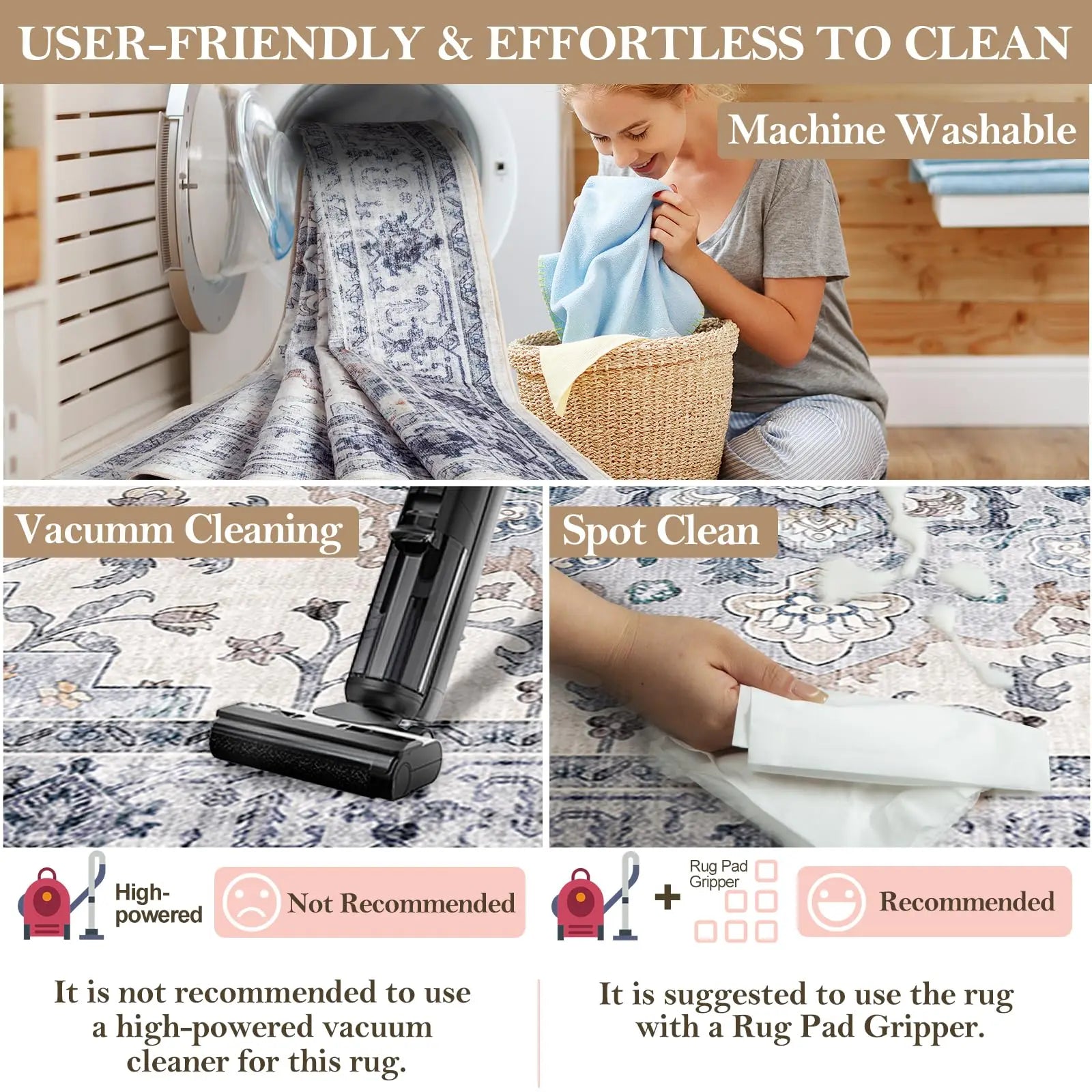 Machine Washable Area Rugs for Living Room Carpet Non Slip Low Pile Water Repellent Soft Print Pattern