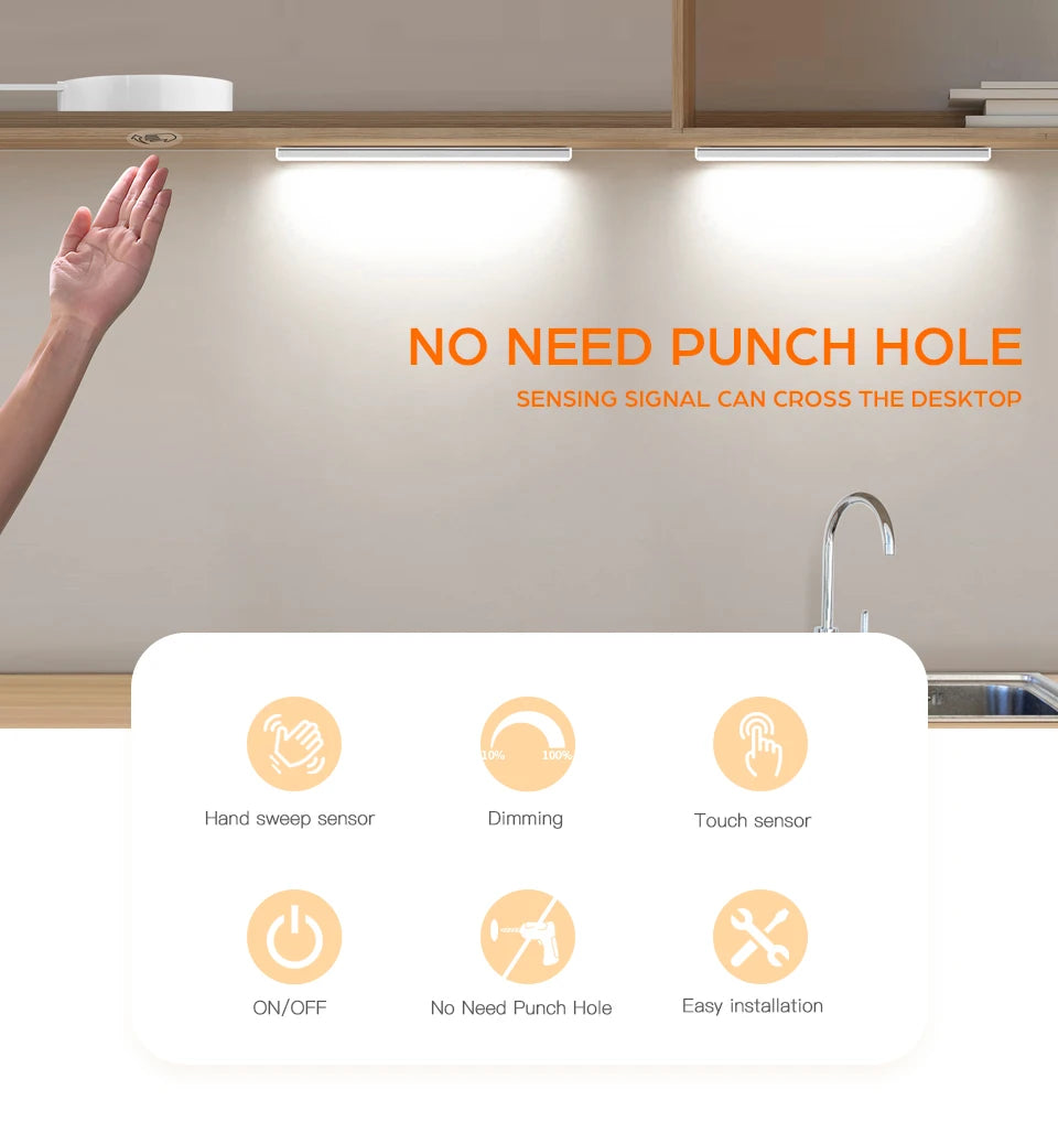 Motion Touch Sensor LED Lights Wireless Light Penetrable Wood Aluminum Bar Light Cabinet Wardrobe Lamp Backlight