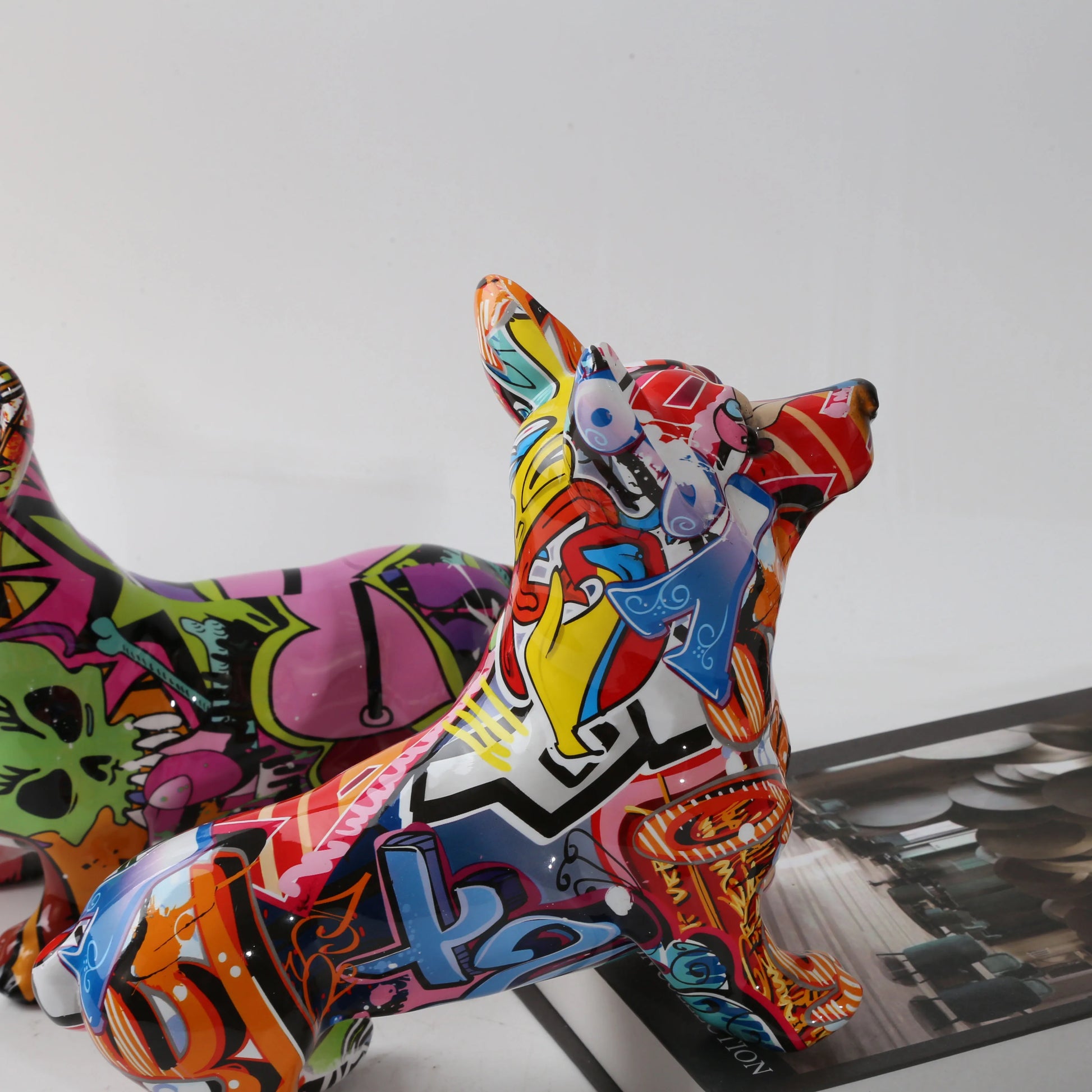Nordic Art Graffiti Dog Painting Creative Resin Crafts Home Decor for All Rooms