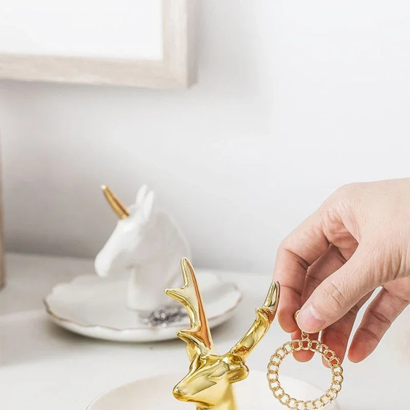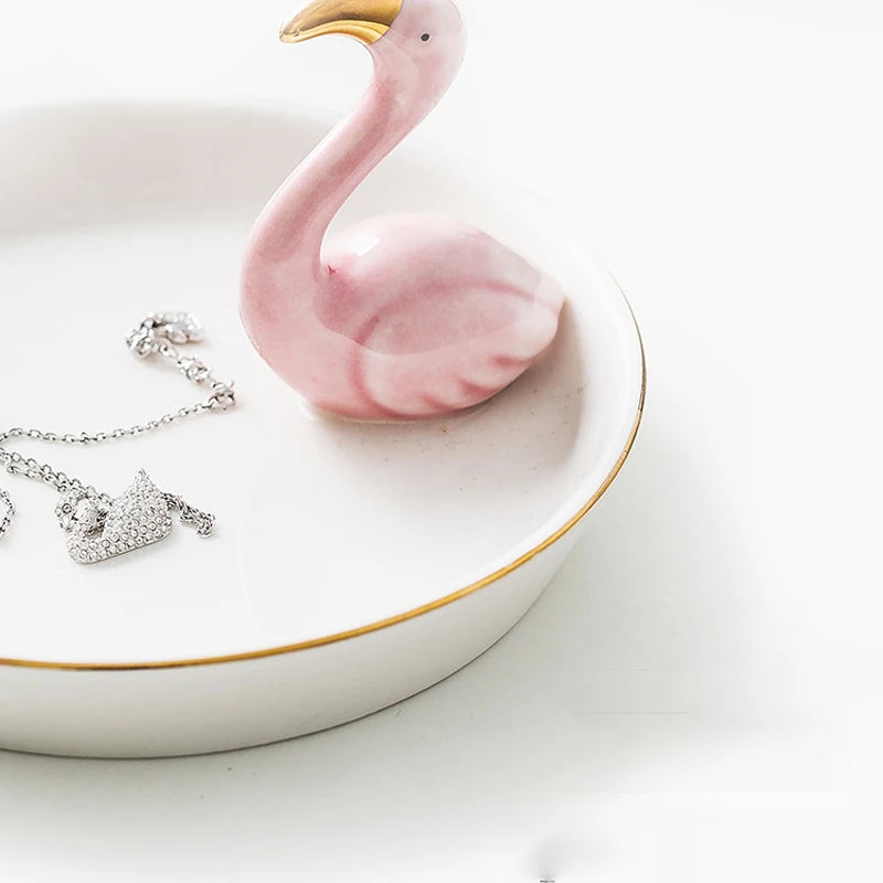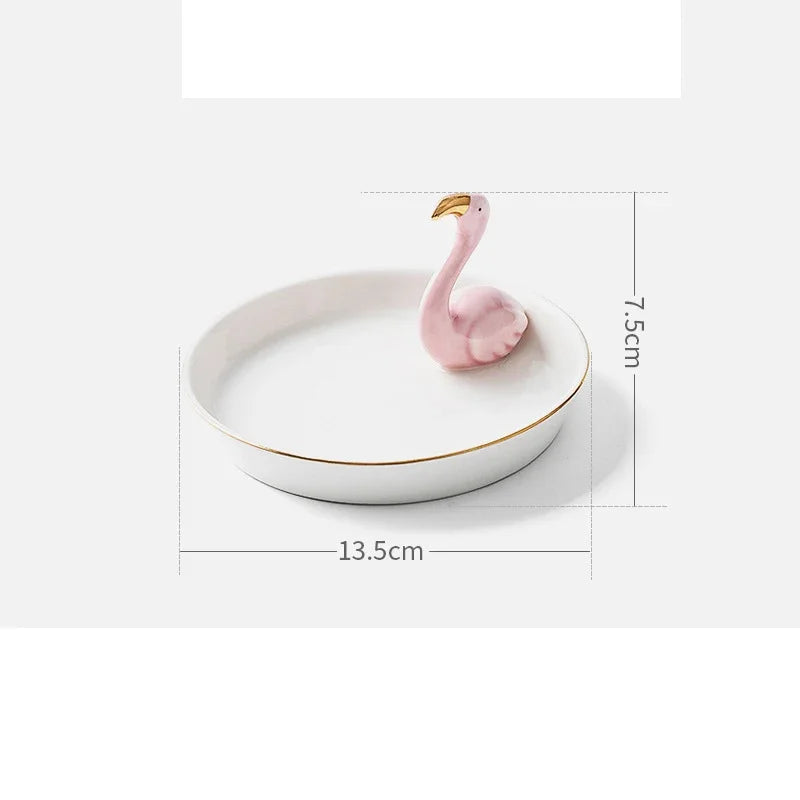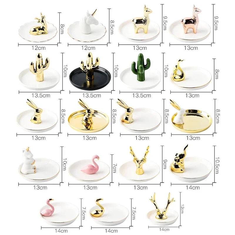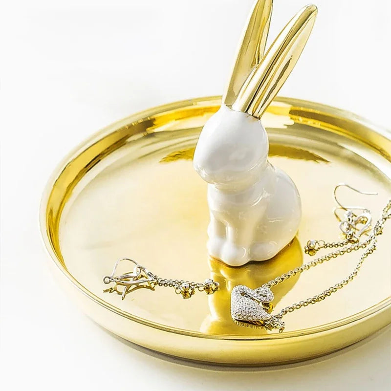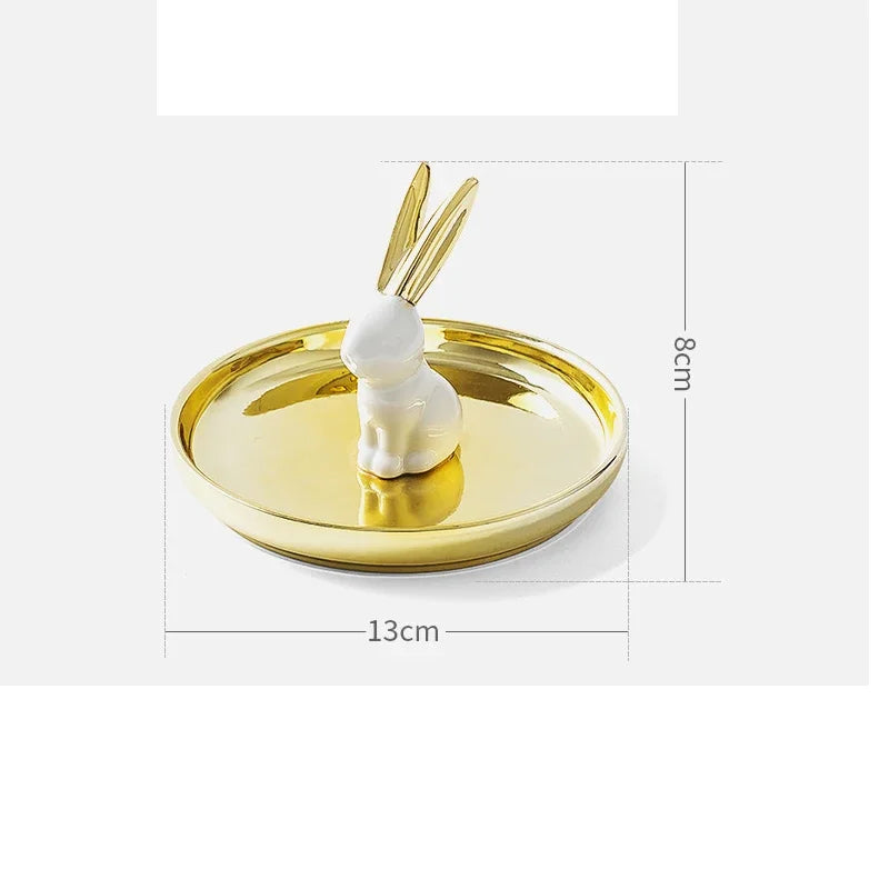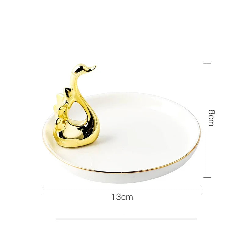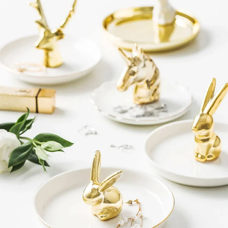 Nordic Ceramic Gold plating Jewelry Dish Storage Plates Dessert Display Bowl Decoration Tray