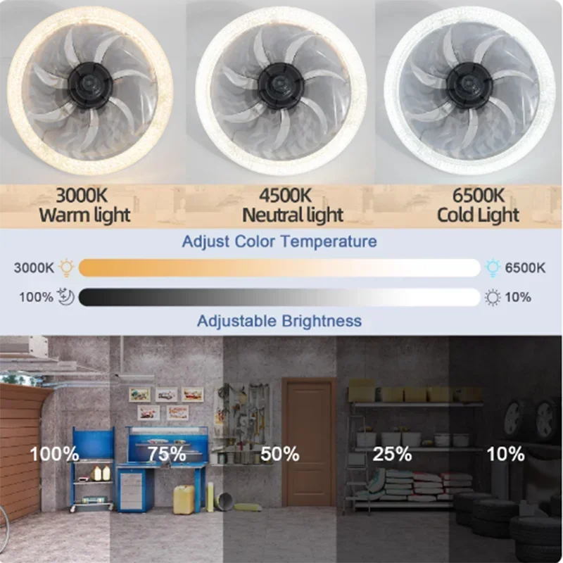 Function support: brightness adjustment/three-tone lighting/four-speed wind speed adjustment