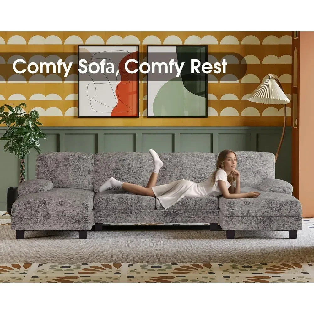 Sectional Couches for Living Room U-Shaped Sofa with Linen Fabric 4 Seat Sofa Set with Double Chaise