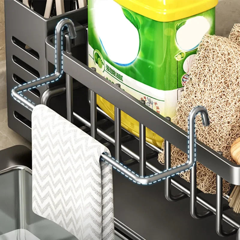 Stainless Steel Kitchen Sink Storage Rack Space Saving Built-in Sponge Rack and Drainage Basket for Kitchen