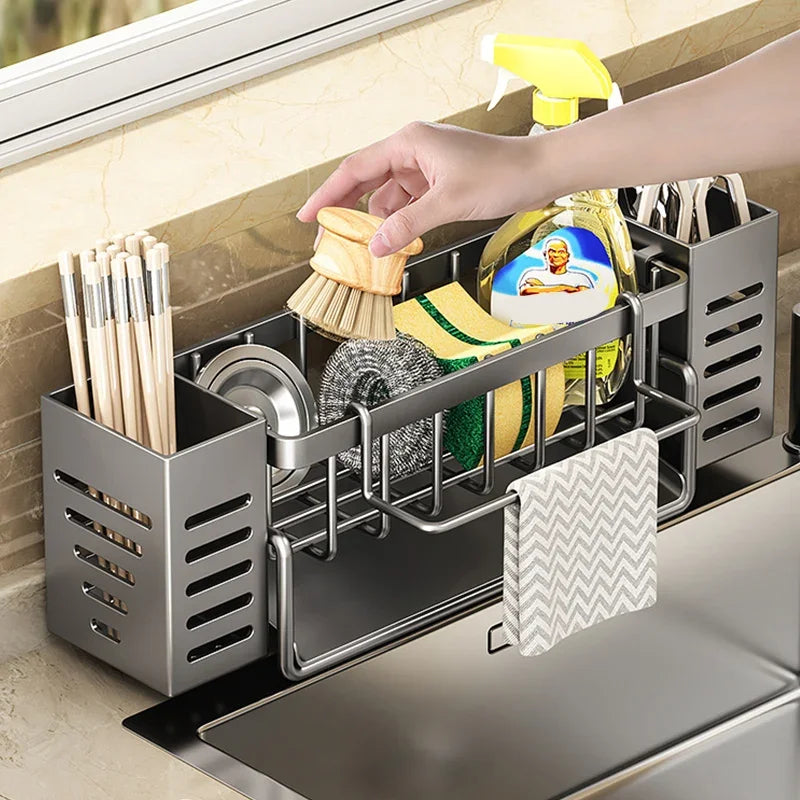 Stainless Steel Kitchen Sink Organizer: Space - Saving, Built - In Sponge Holder and Drain Basket