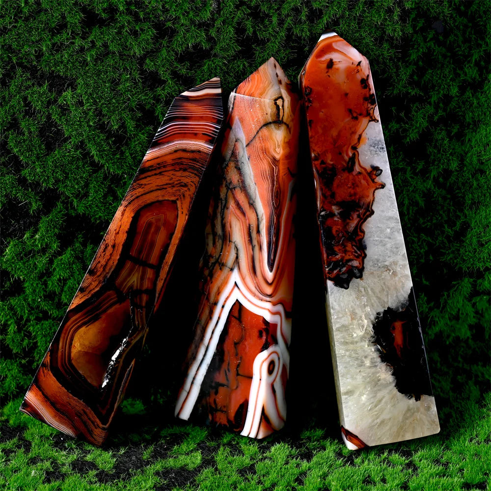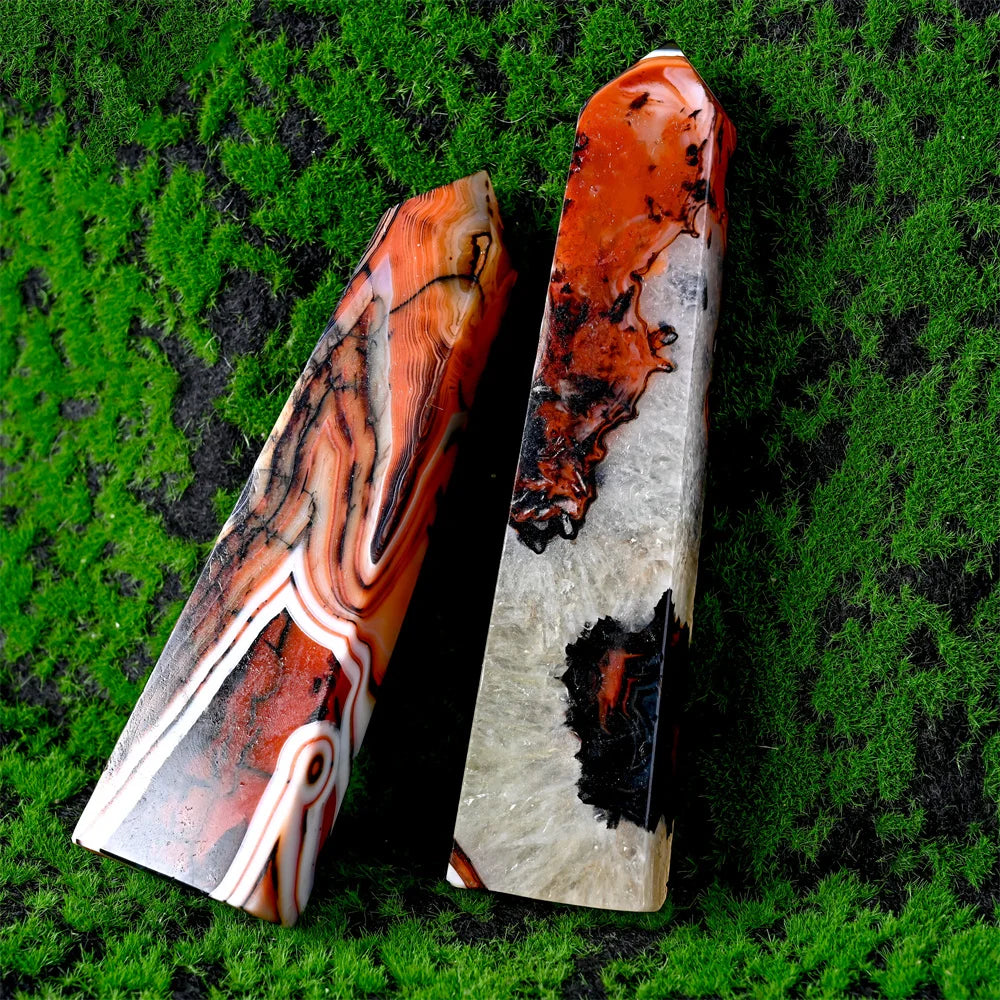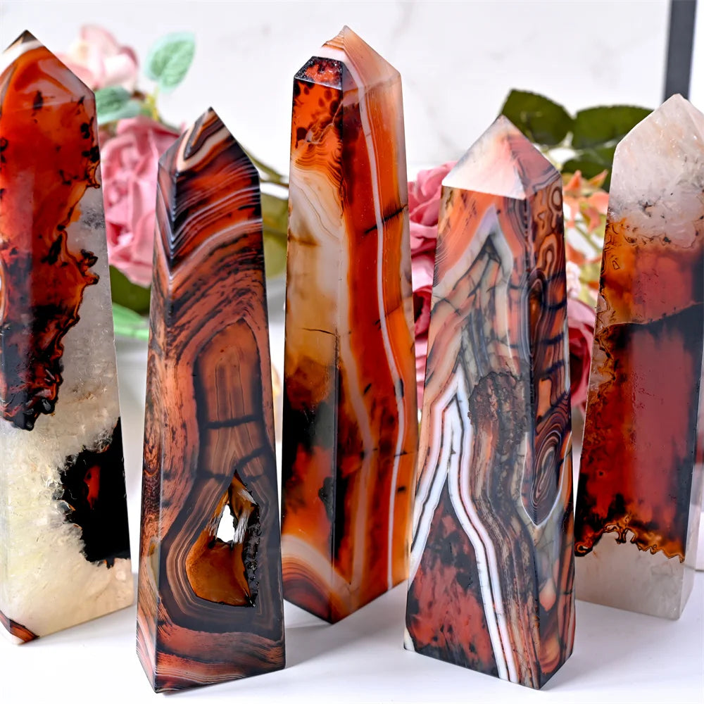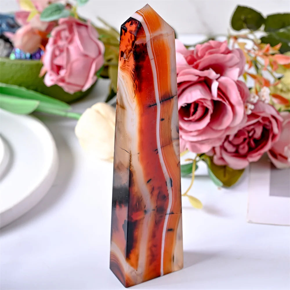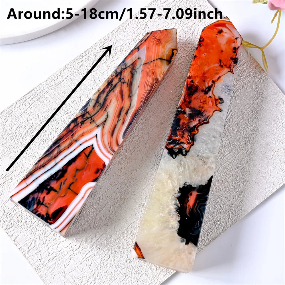 Stunning red and black agate crystal square column, crystal collection decor stone tower