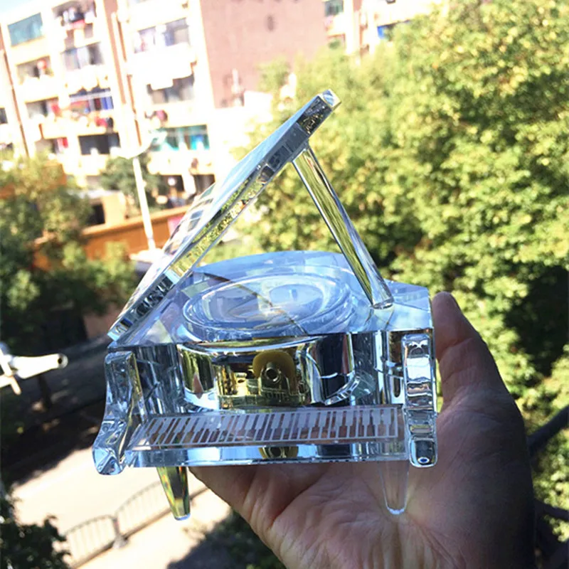 Top Quality K9 Crystal Beautiful Piano Ornament Music Box Customize Frame For Birthday Gift Wedding Party Home Office Decoration