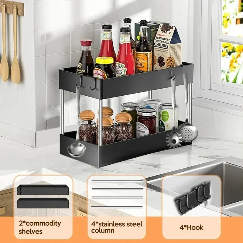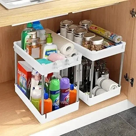 1/2 Pcs Under Sink Storage Organizer 2 Tier Drawer Multipurpose Rack Cabinet Under Sink Storage Rack Bathroom Kitchen Organizer