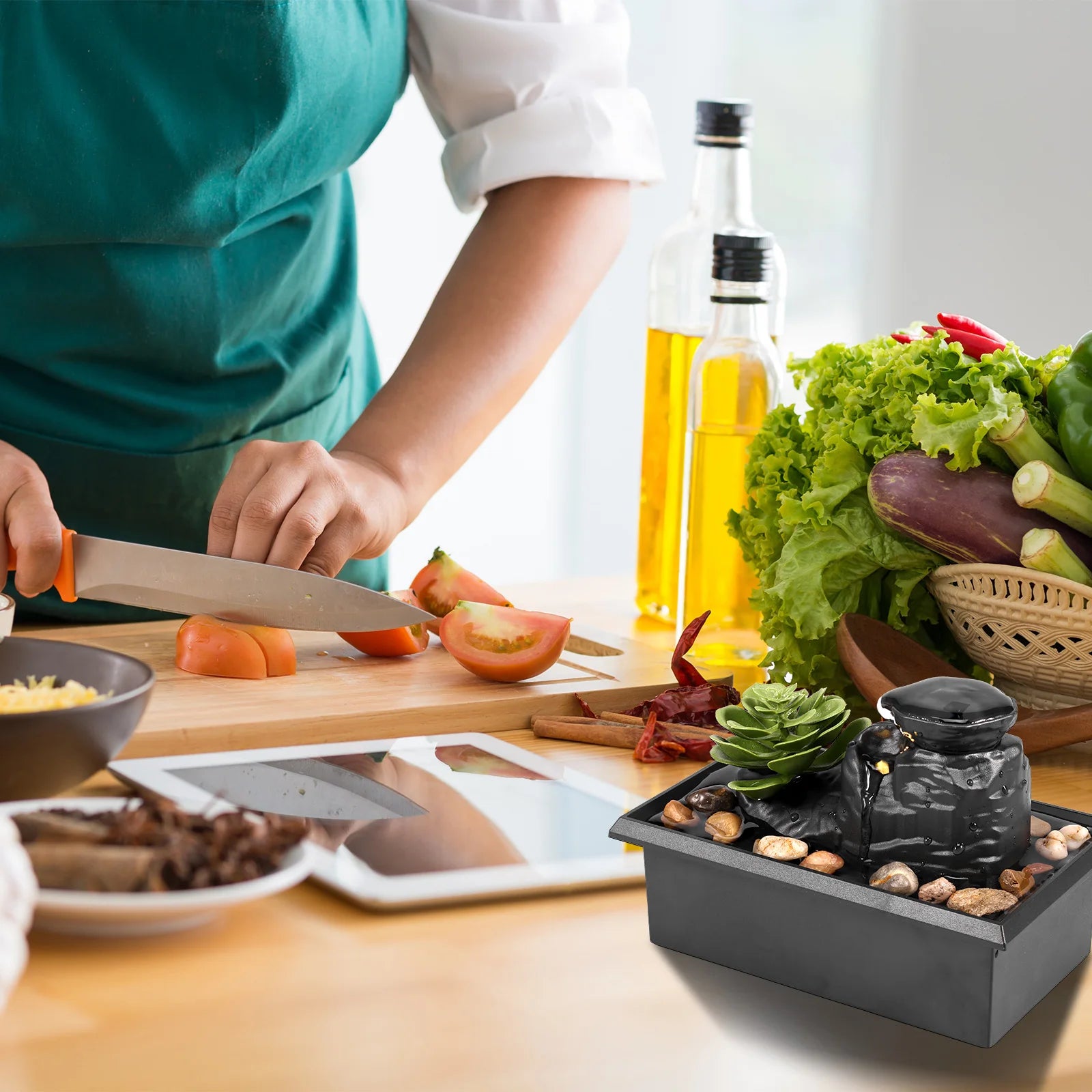 [Mini Desktop Fountain] Our mini fountain has 4 styles for you to choose from, Waterfall: 11x9x17cm, Succulent: 16x9x11.8cm, Lotus: 11.5x11.5x17cm, Running Water: 11.5x10x17cm, it can be easily placed on your desktop, desk, and garden without taking up too much space. Perfect for bathroom, dining room, outdoor zen table decoration or porch outdoor fountain. Please check the size before purchasing.